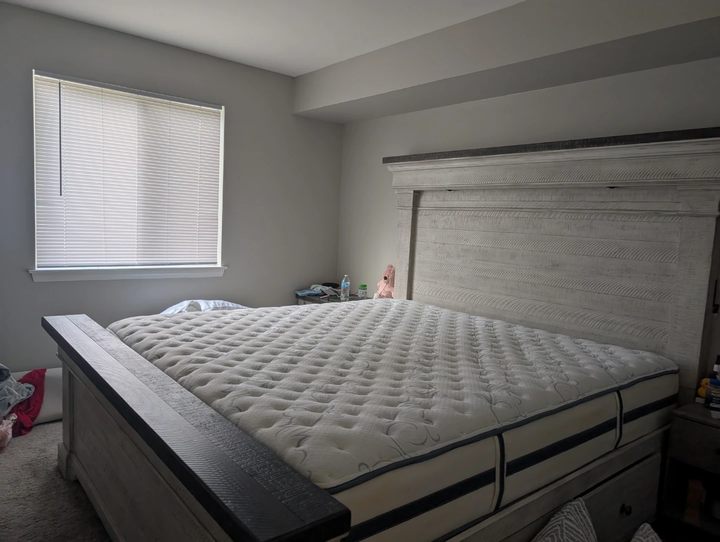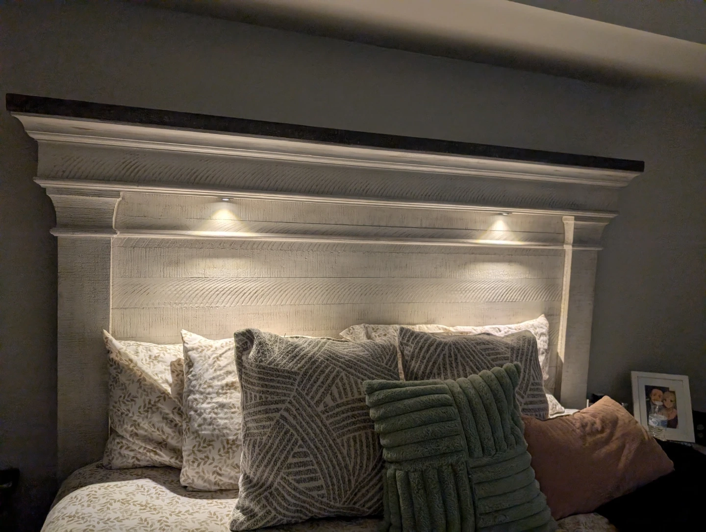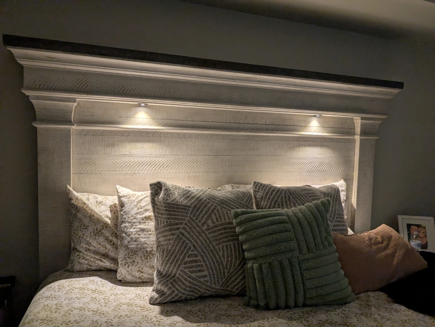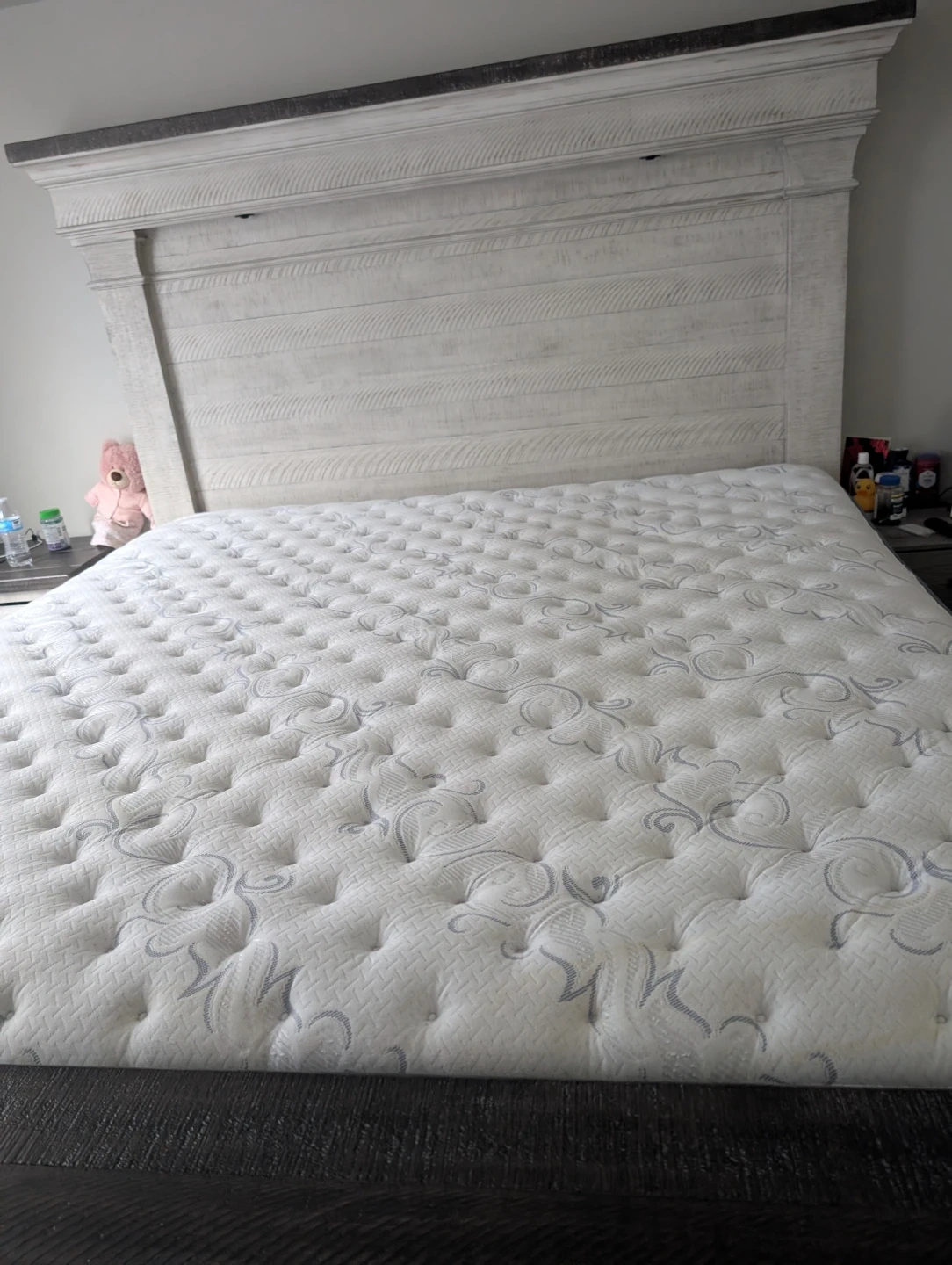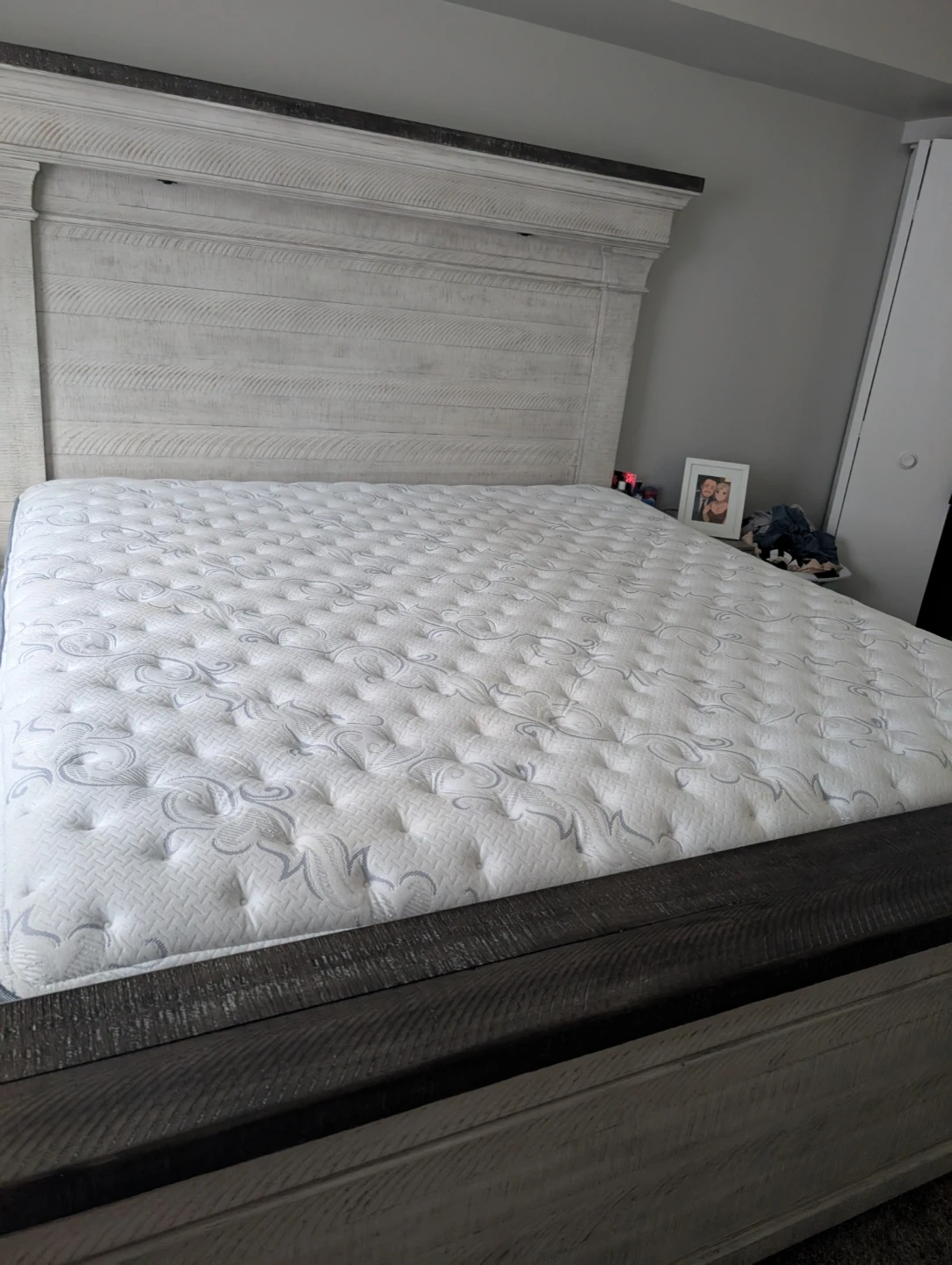65Selling a king size bed frame. It's in great condition and has a beautiful, rustic look. The headboard features built-in lights, perfect for reading in bed!