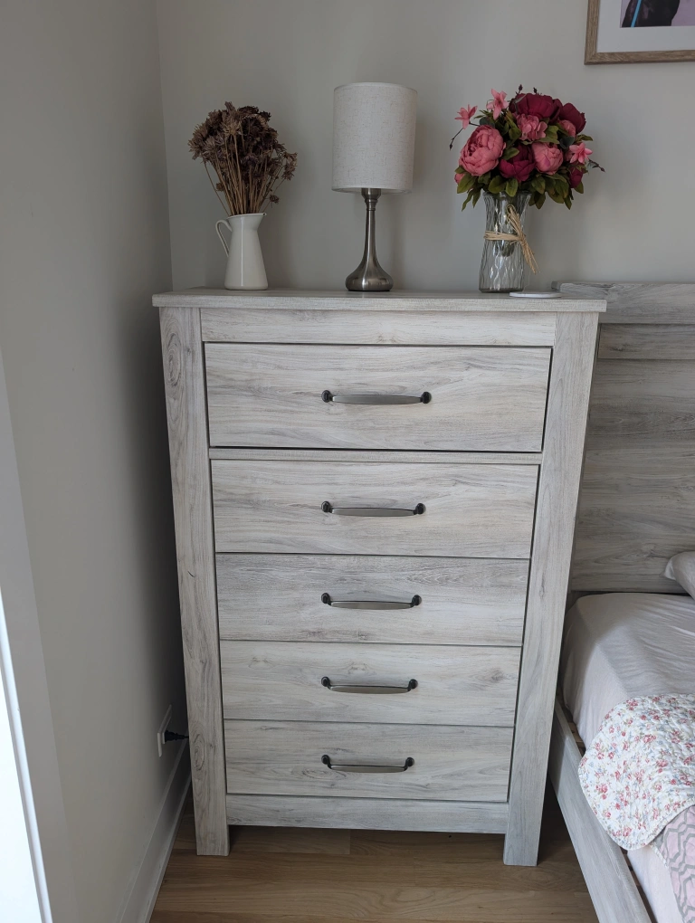White Dresser with Gold Hardware