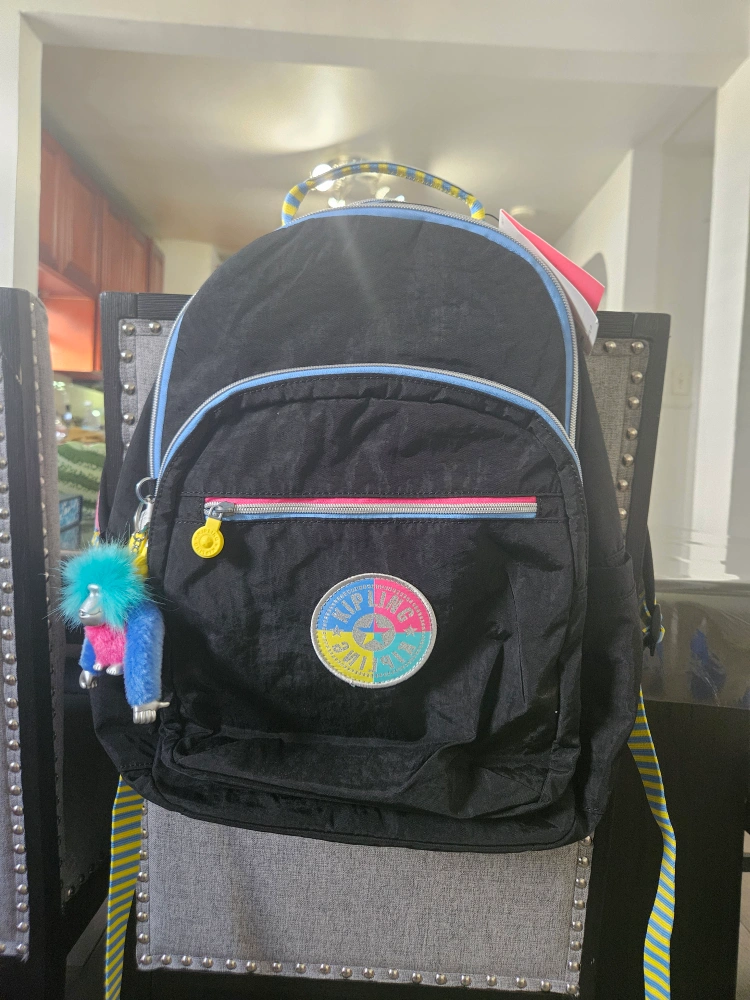 Selling a Kipling Seoul backpack in True Black! It's in great condition and features a roomy design with padded shoulder straps. It has a laptop sleeve and is made with 100% recycled lining. Originally bought for $139