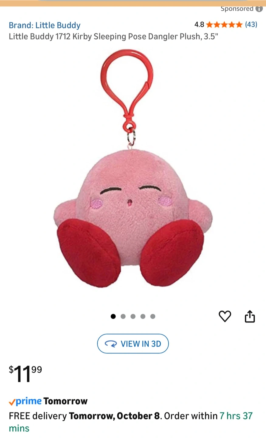 65Kirby Sleeping Pose Dangler Plush! It's 3.5 inches and super cute. Originally bought for $11.99