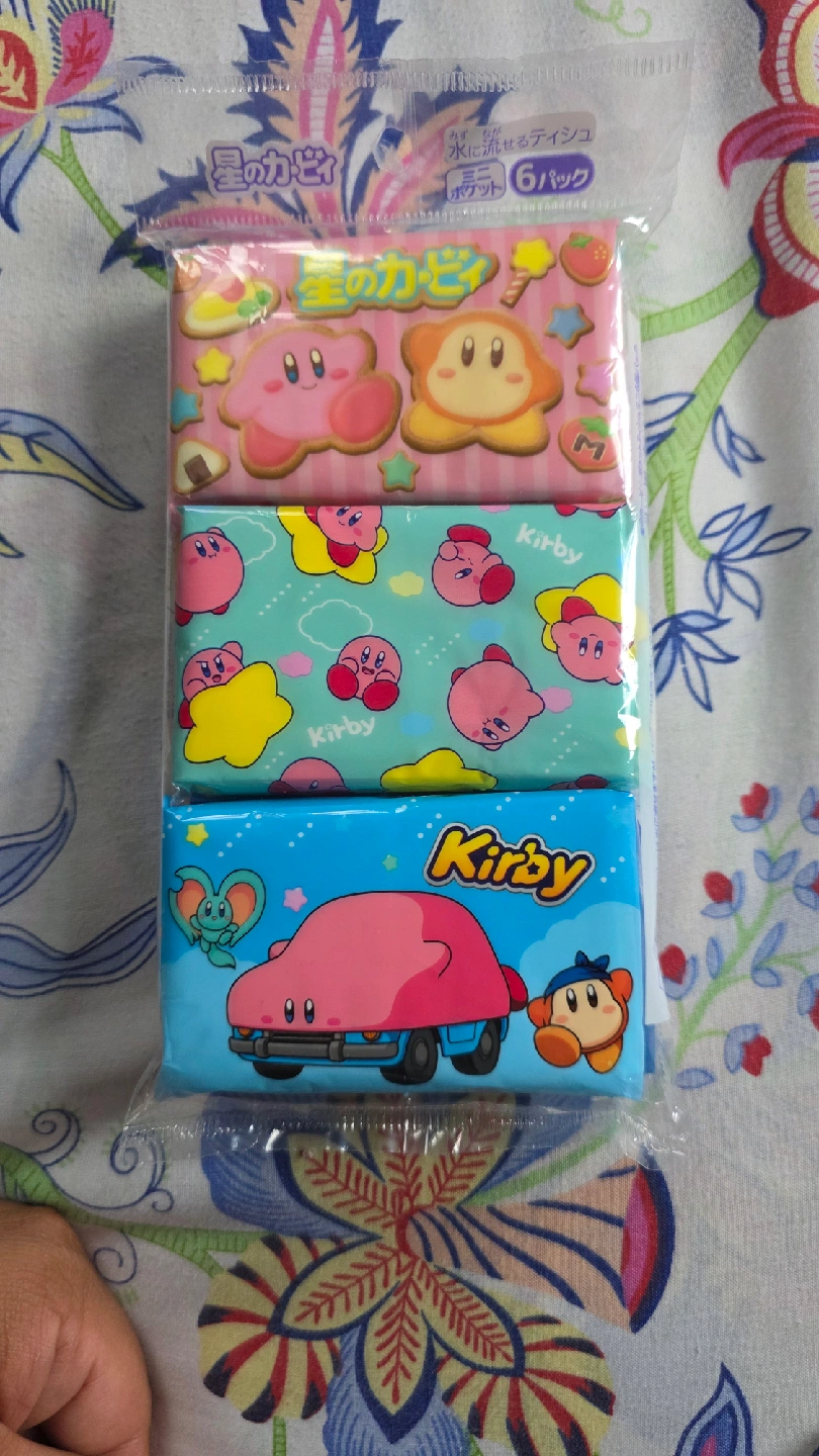 Selling a 6-pack of Kirby pocket tissues. They are perfect for on-the-go use and feature adorable Kirby designs