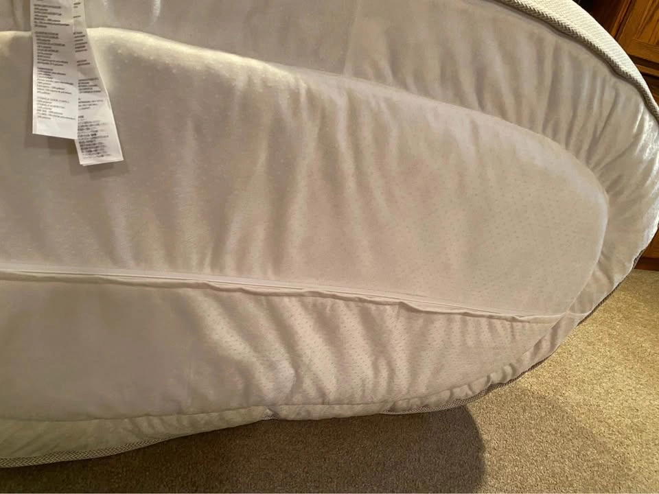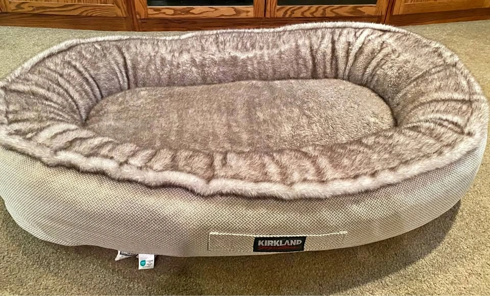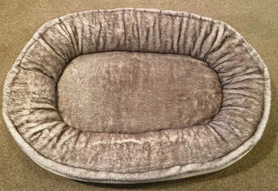 Measures approximately 46" x 32". It features a blended fill of polyester and chopped foam for gentle support. The exterior is made of woven fabric, while the inside has soft faux fur. The cover is removable and machine washable for easy care. Used only a couple of months. Like new condition. Originally $56. Pick up in Beverly, near 107th & Western.