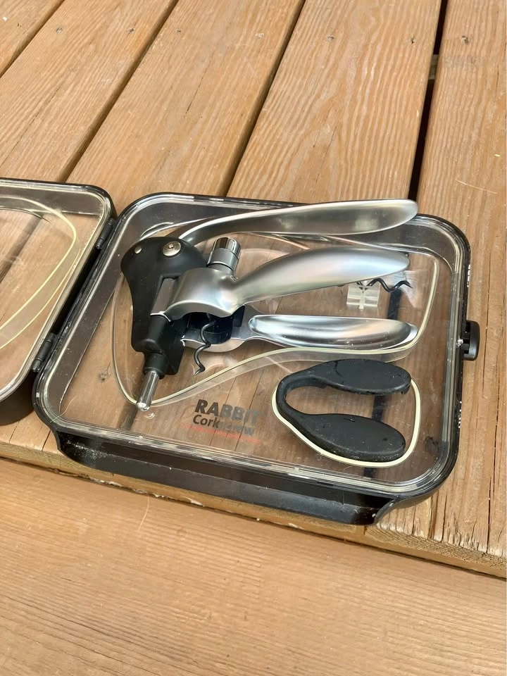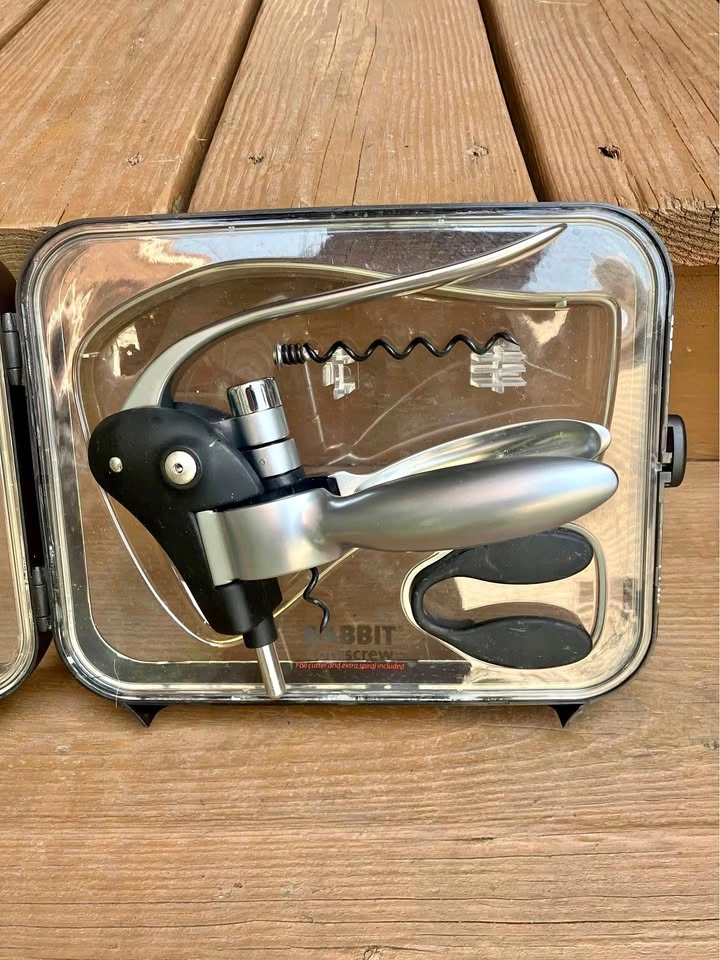 Kirkland Signature Rabbit Corkscrew Opener In Hardcase - Like New Snap-lock case has been opened but appears to have never been used. Includes steel Rabbit opener with 2 corkscrews and foil cutter. Open bottles easy and precisely on the first attempt. 5 star rating on Amazon. From a smoke and pet free home. Check out in person before purchasing. Thanks for looking.