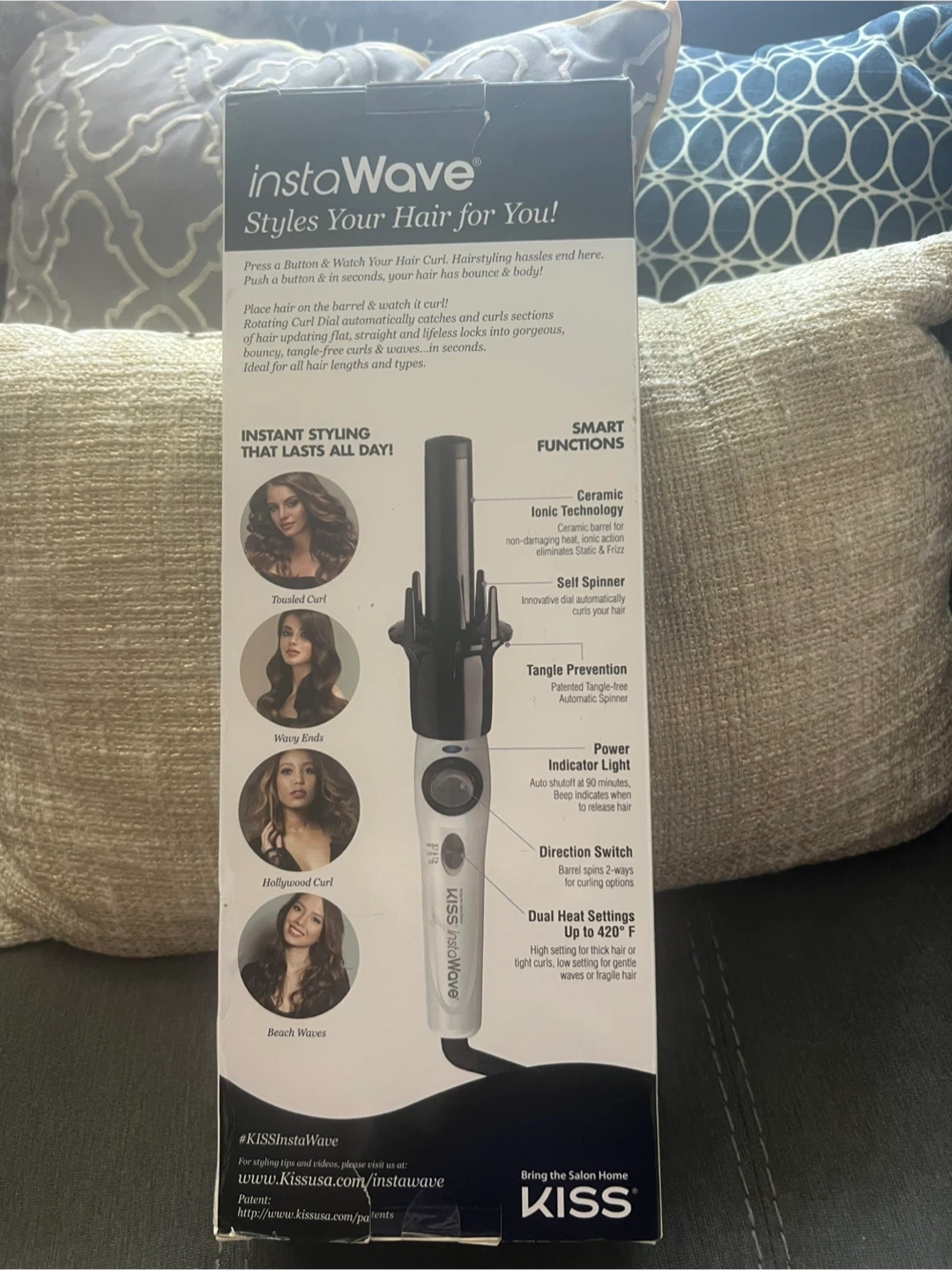 I'm selling a brand new KISS instaWave Deluxe Automatic Curler! It's still in its original packaging and ready to help you style your hair with ease. The box includes the automatic curler itself. - Styles Your Hair for You! - Instant Styling That Lasts All Day! - Smart Functions: Ceramic Ionic Technology, Self Spinner, Tangle Prevention, Power Indicator Light, Direction Switch, Dual Heat Settings Up to 420°F