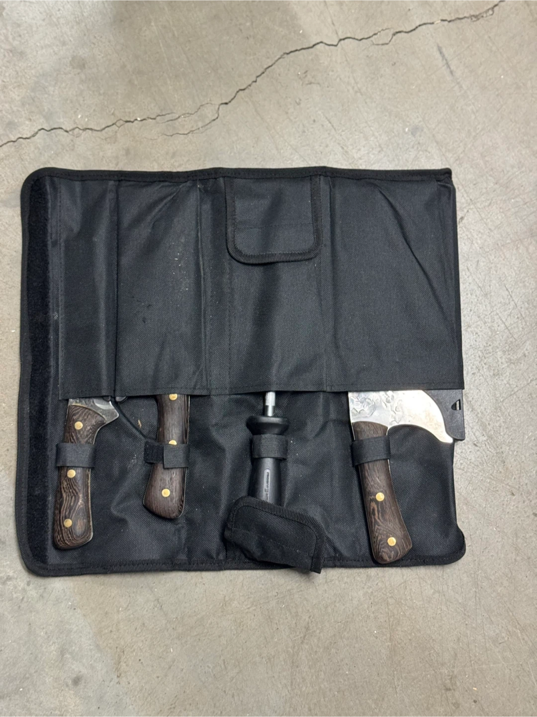 Selling a kit of knifes and LED Headlight. It is red and black and has an adjustable strap. Great for camping or working in dark places!