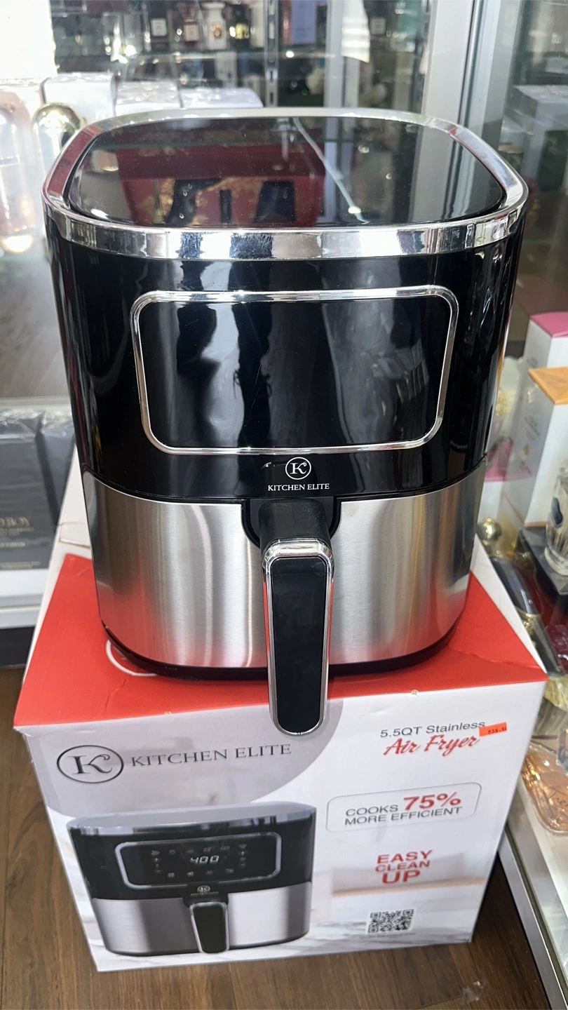 I'm selling a Kitchen Elite 5.5 QT Stainless Air Fryer. This air fryer cooks 75% more efficiently and is easy to clean up! It comes with the box