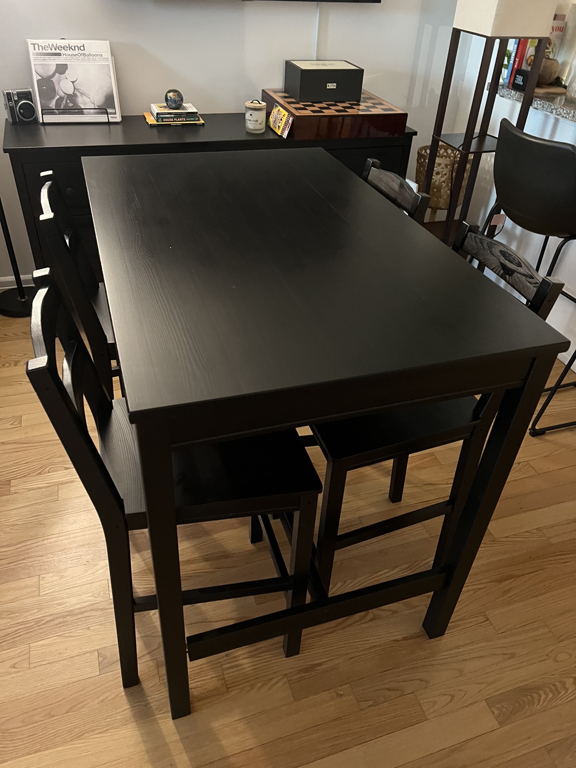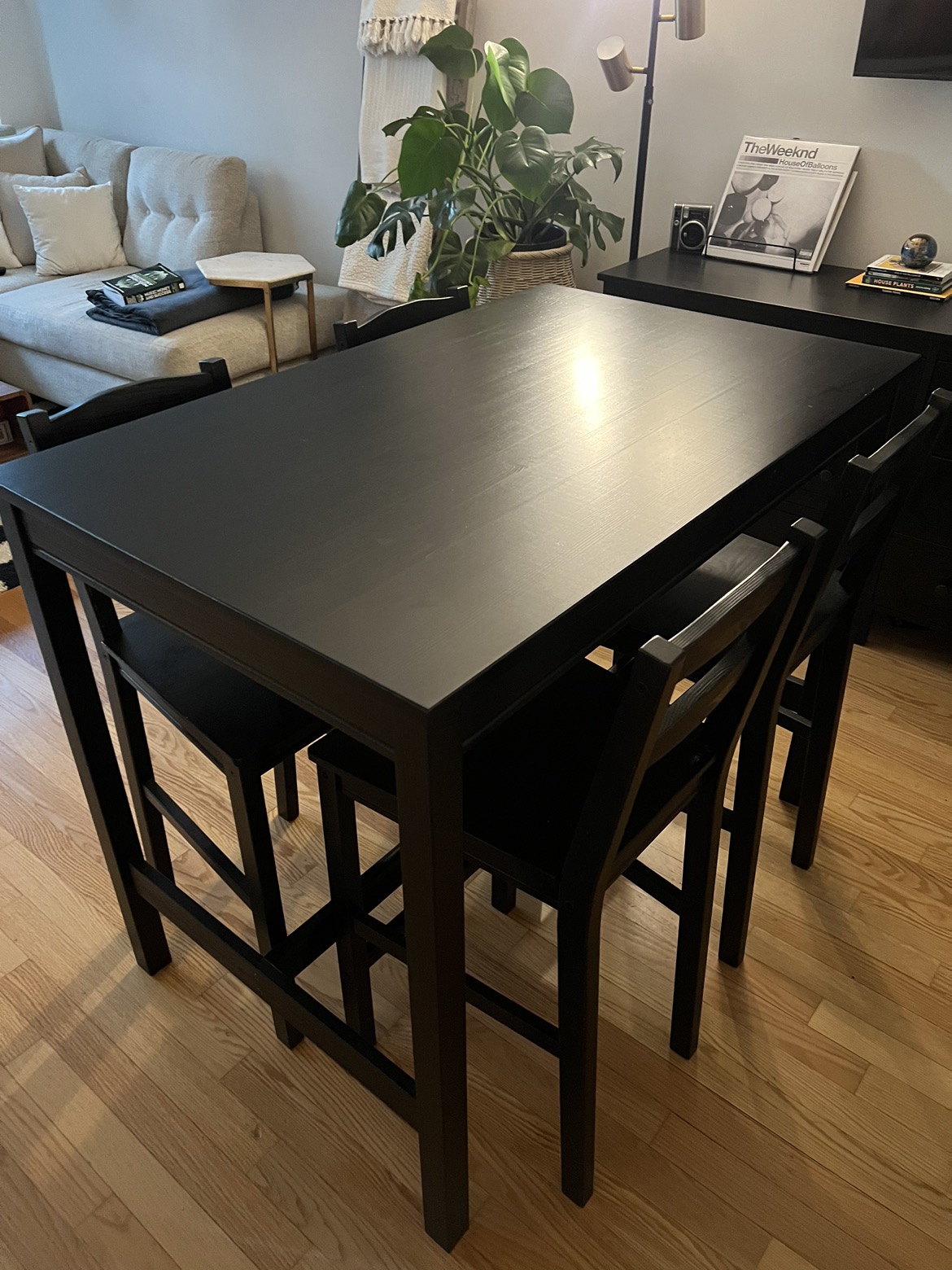 Set of 5 Wooden Dining Chairs and TABLEwith Woven Seats