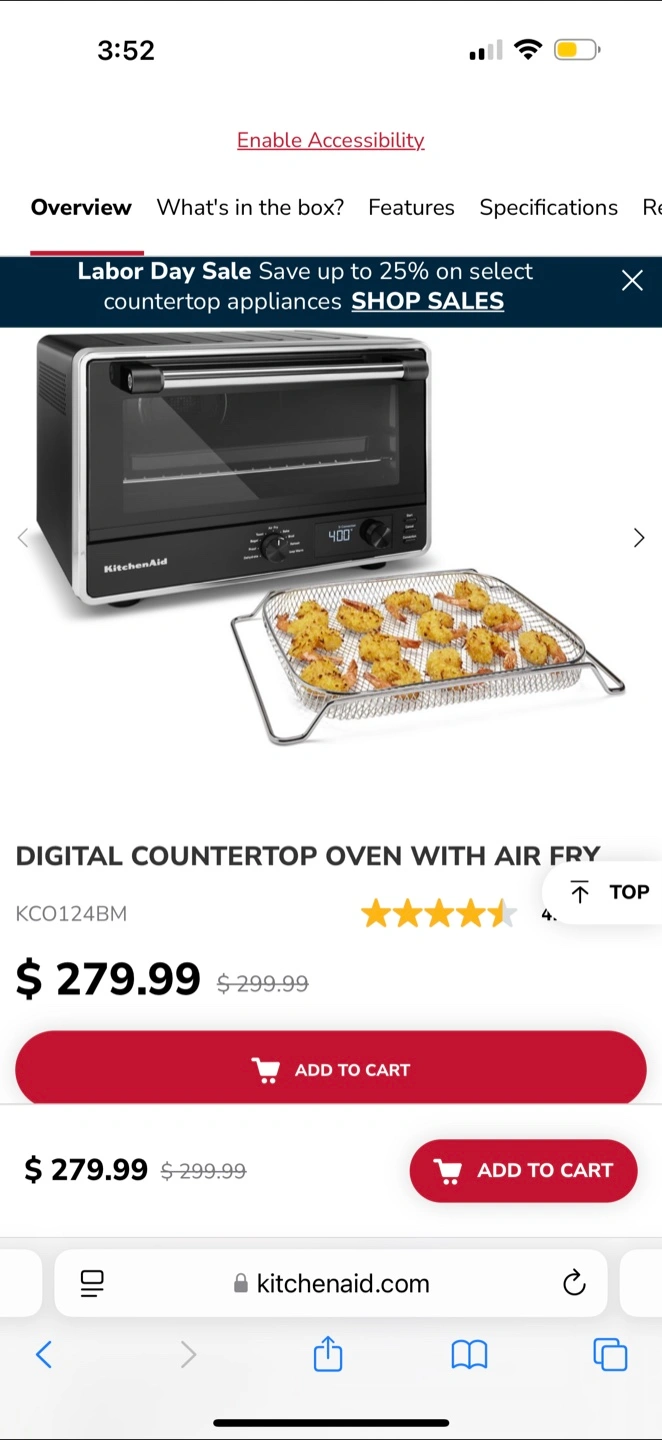 Selling a KitchenAid Digital Countertop Oven with Air Fry! It's in great shape and ready for a new home. This model is the KCO124BM and originally retailed for $279.99. Enjoy versatile cooking with air fry, bake, broil, and more!