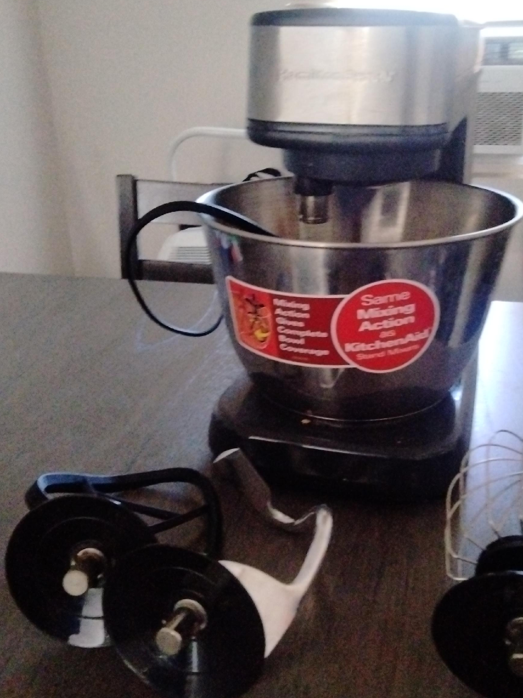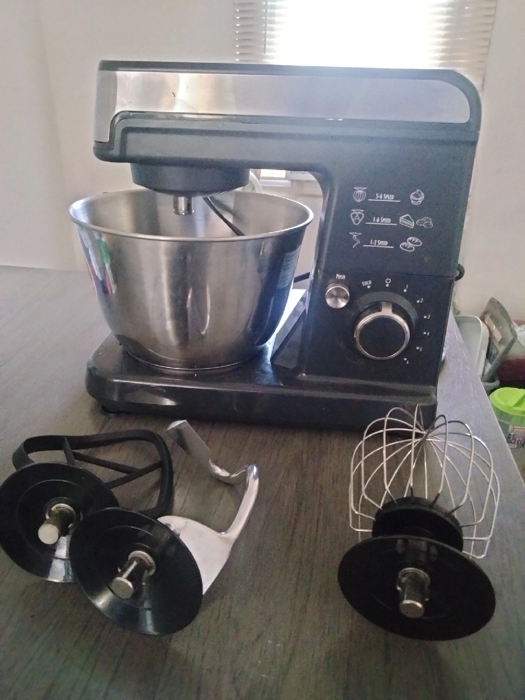 Selling a KitchenAid stand mixer in black. It comes with multiple attachments as pictured! Perfect for all your baking needs. It is a tilt stand