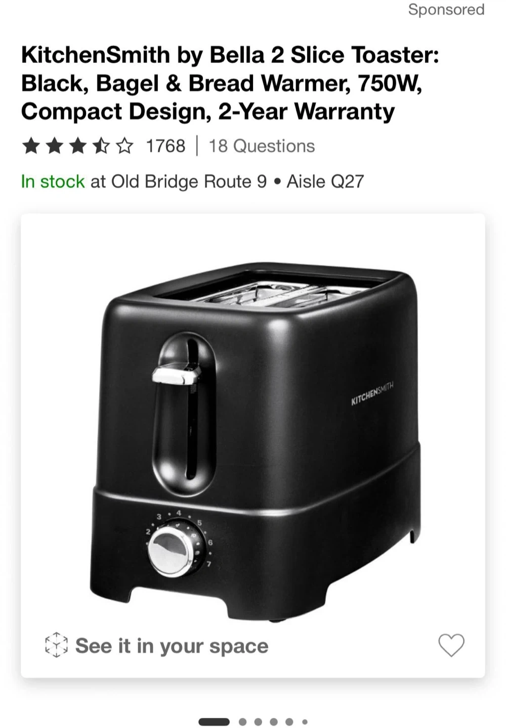 60Selling a KitchenSmith by Bella 2 Slice Toaster in black! It's a bagel & bread warmer with 750W and a compact design. It also comes with a 2-year warranty