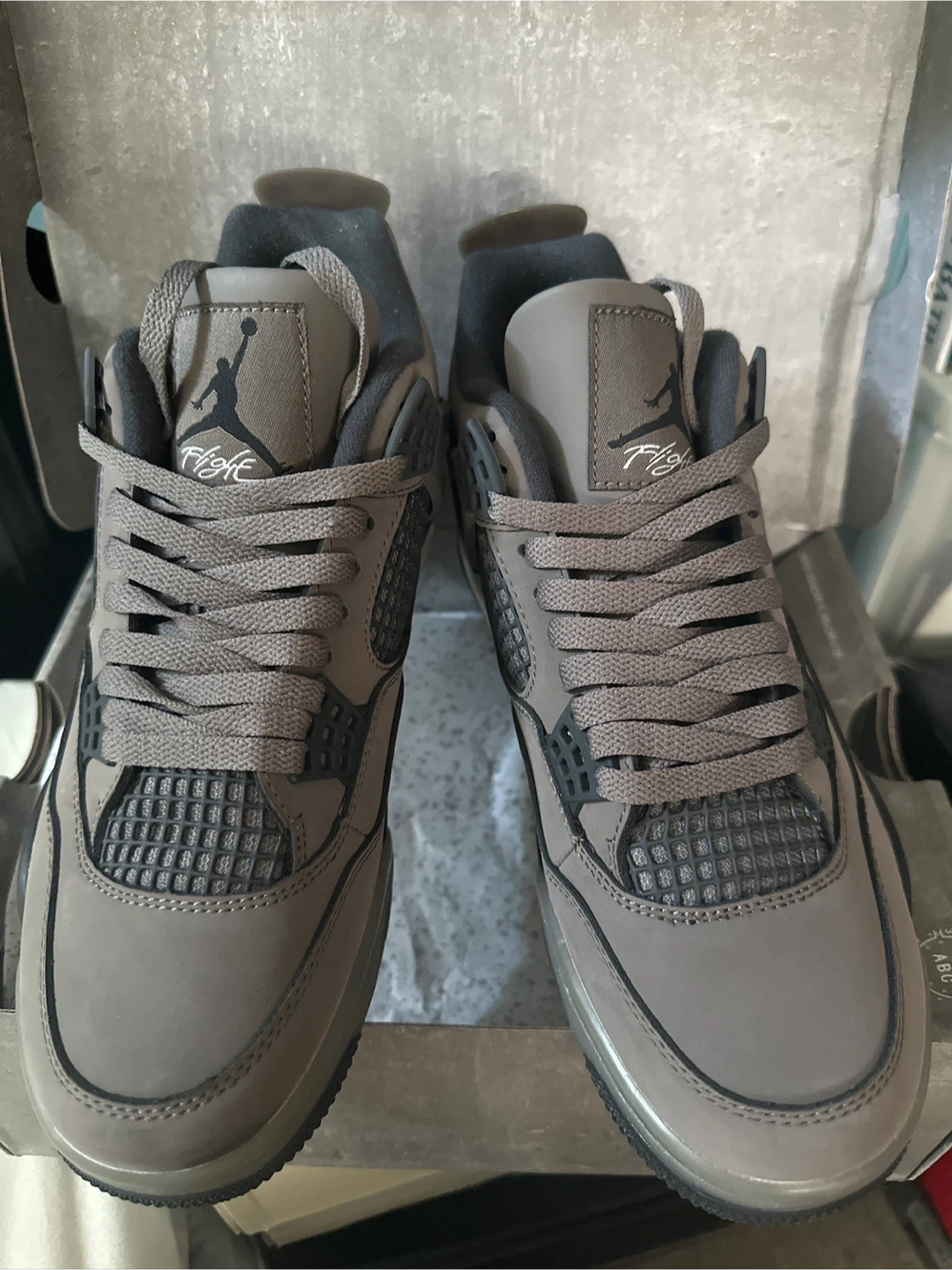 These are a pair of Nike Air Jordan 4 sneakers in a "Reimagined" style. They feature an "Industrial Blue" colorway. The shoes come in their original box.