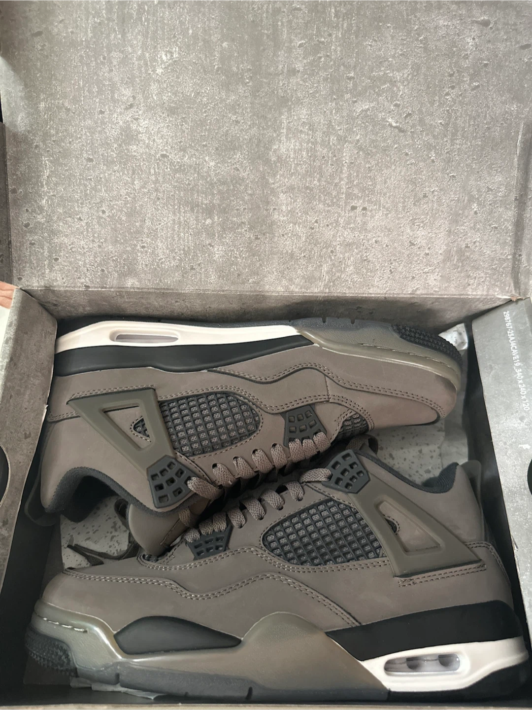These are a pair of Nike Air Jordan 4 sneakers in a "Reimagined" style. They feature an "Industrial Blue" colorway. The shoes come in their original box.