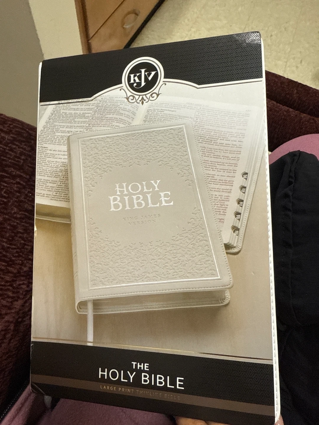 Selling a KJV Holy Bible, large print thinline edition! It's in great condition and comes in its original box