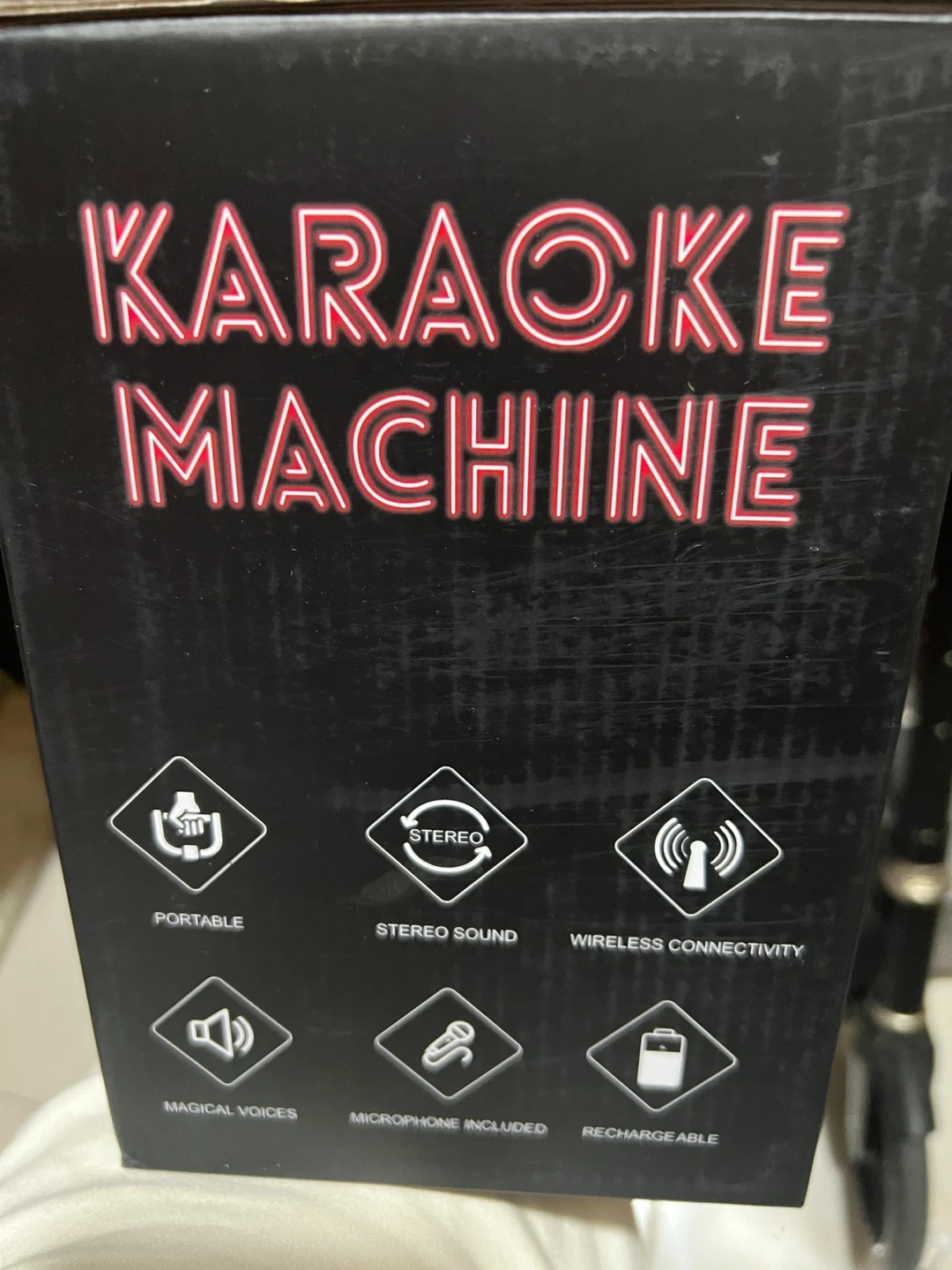 This Selby karaoke machine comes with two microphones. It's portable, features stereo sound, and wireless connectivity. Rechargeable battery included. Magical voices and microphone included!