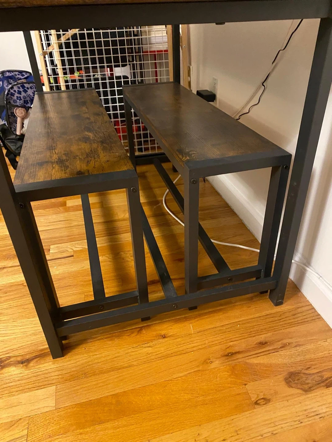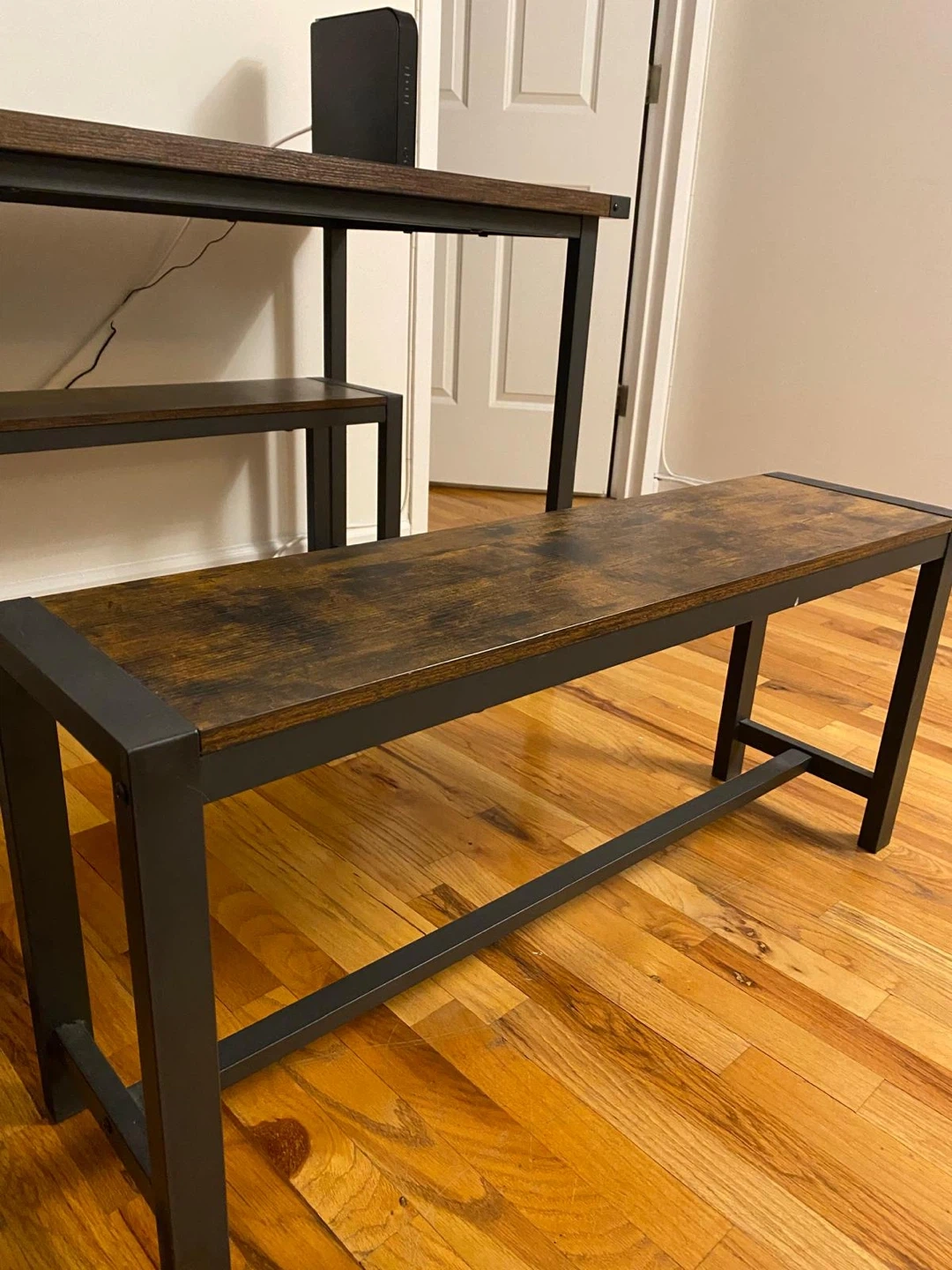 Industrial Style Dining Table with Benches (seats 4)