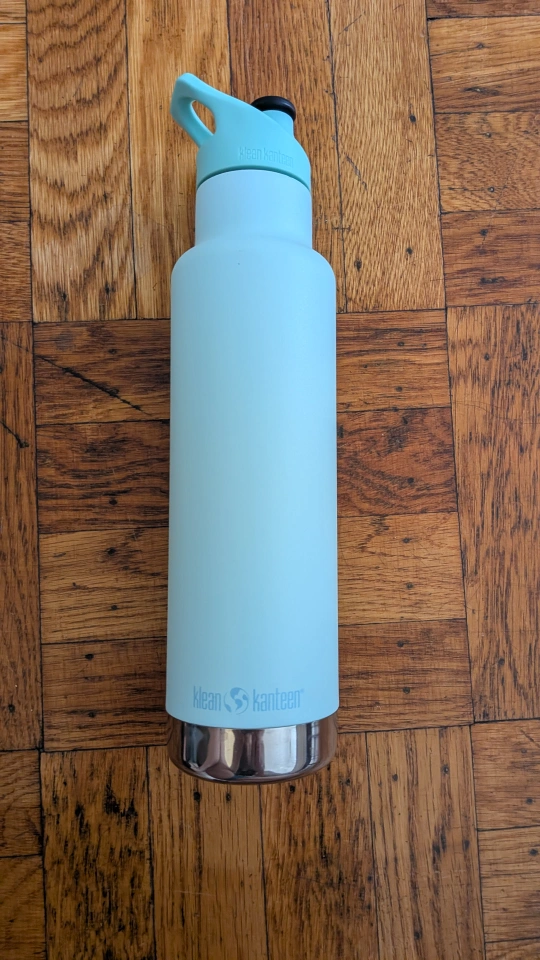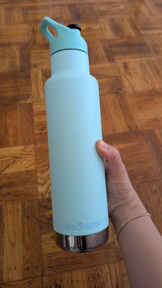 I'm selling a Klean Kanteen water bottle! It's a 20oz size and comes in a nice light blue color. It's vacuum insulated to keep your drinks cold or hot. The bottle is made from 18/8 stainless steel.