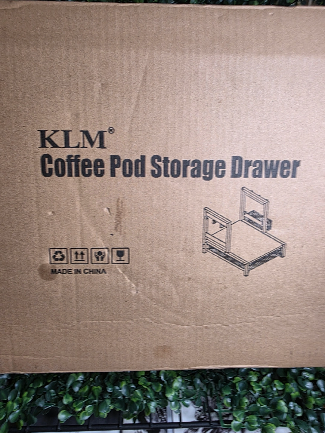 Here's a KLM coffee pod storage drawer to keep your coffee area organized! It's perfect for holding all your favorite coffee pods and keeping them within easy reach. It's in great condition and ready for a new home
