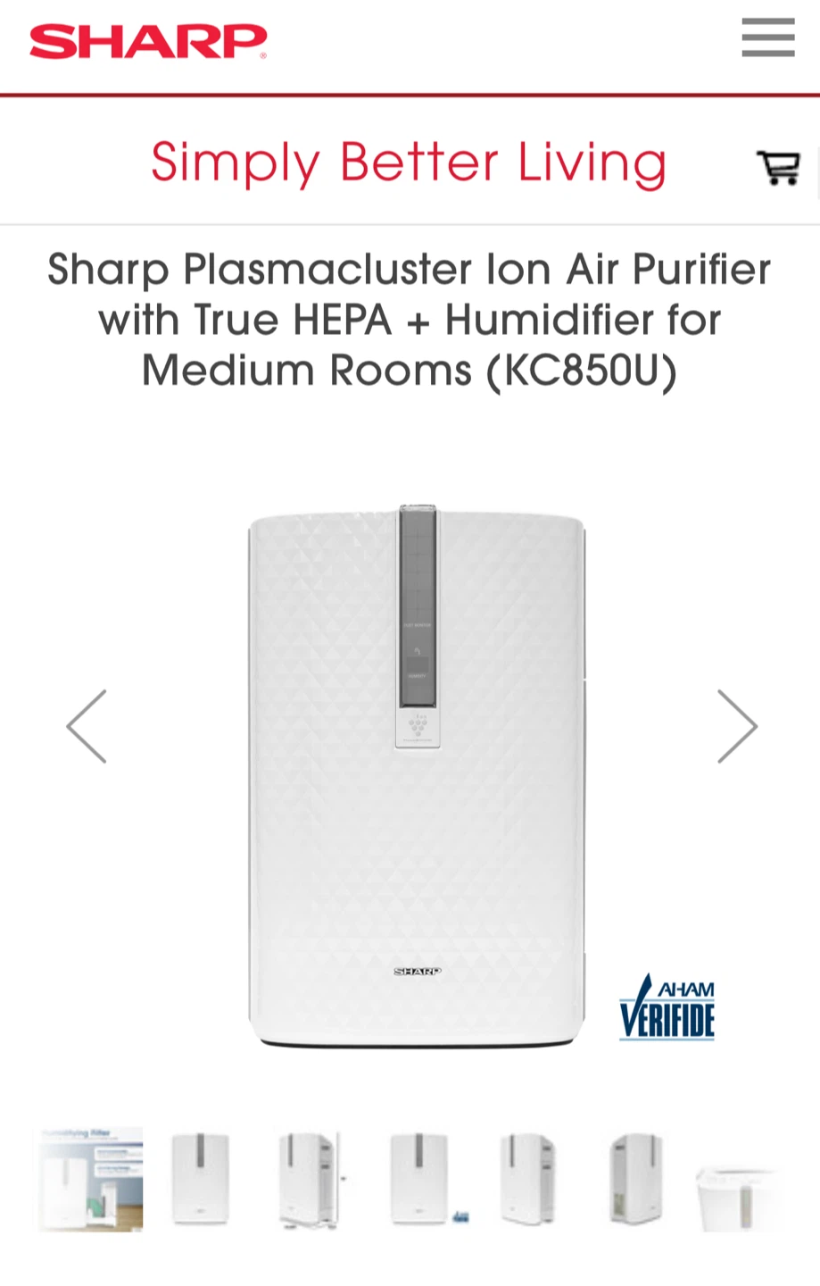 ****Sharp Plasmacluster Ion Air Purifier with True HEPA + Humidifier for Medium Rooms (KC850U)****