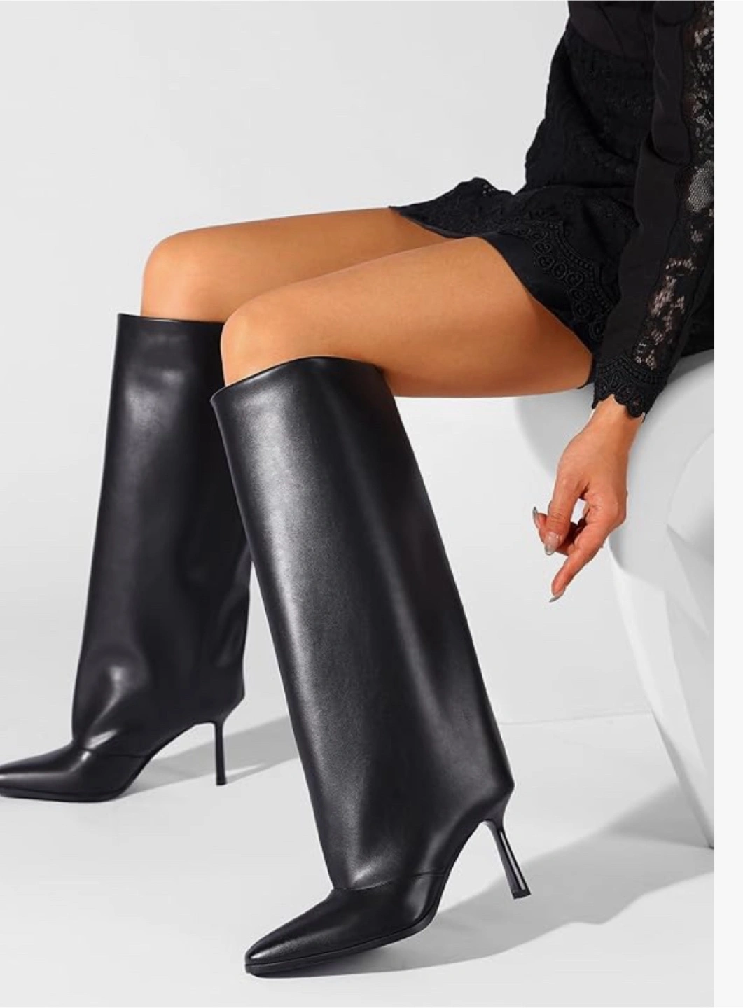 Stylish Pointed-Toe Silhouette for a Sexy Look: The unique pointed-toe and knee-high design creates a modern, leg-elongating effect. Fashion-forward yet versatile, these boots are perfect for date nights or everyday wear. 3.3-Inch (8cm) Slim Heel for All-Day Comfort: Featuring an 8cm heel that’s sleek and stable, these boots ensure smooth, comfortable walking without wobbling. The slip-on design makes them easy to put on and take off. Soft Synthetic Leather with Breathable Comfort: Crafted from high-quality synthetic leather with a knitted lining for enhanced breathability, these boots keep your feet fresh. The rubber outsole provides superior grip