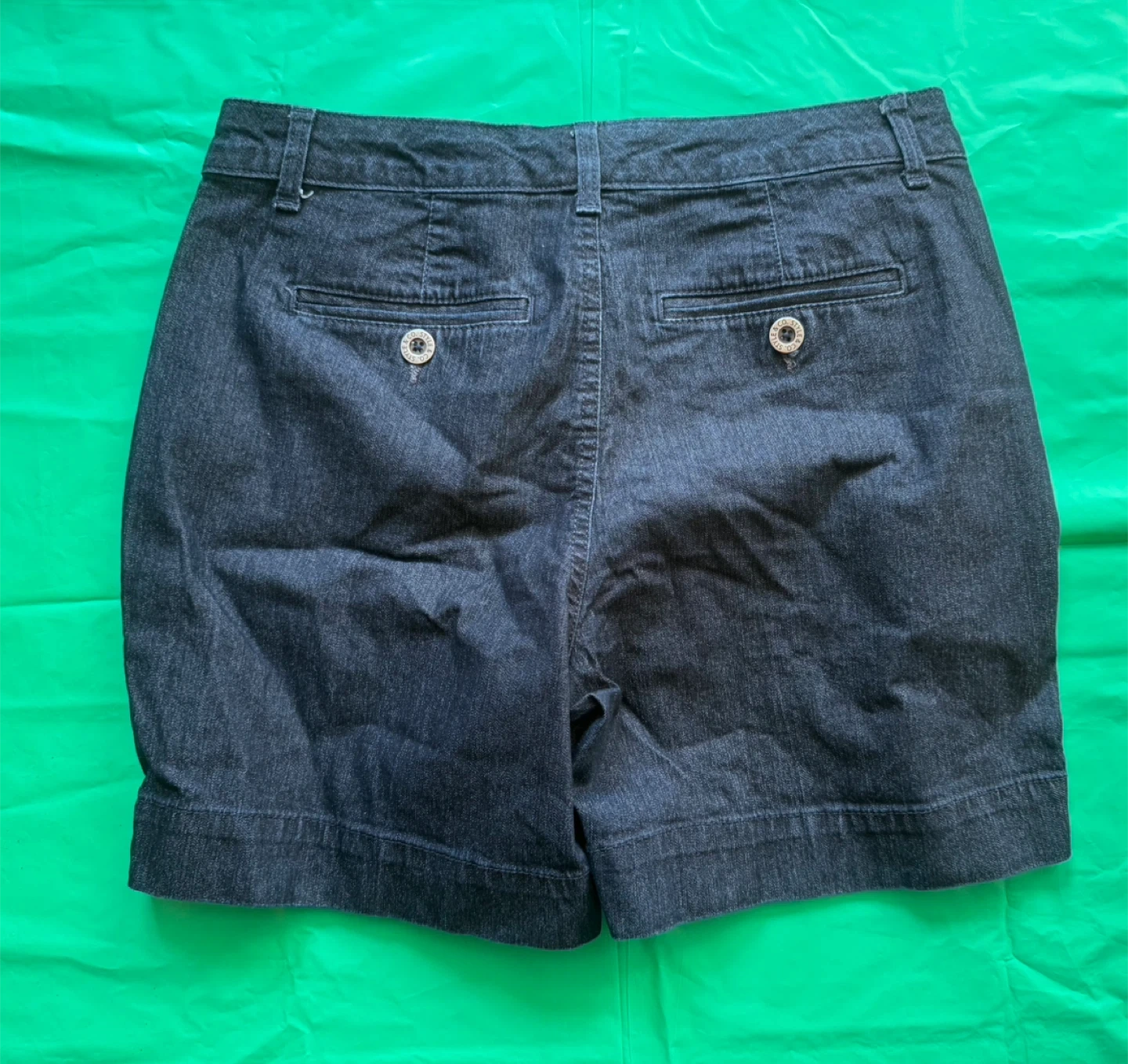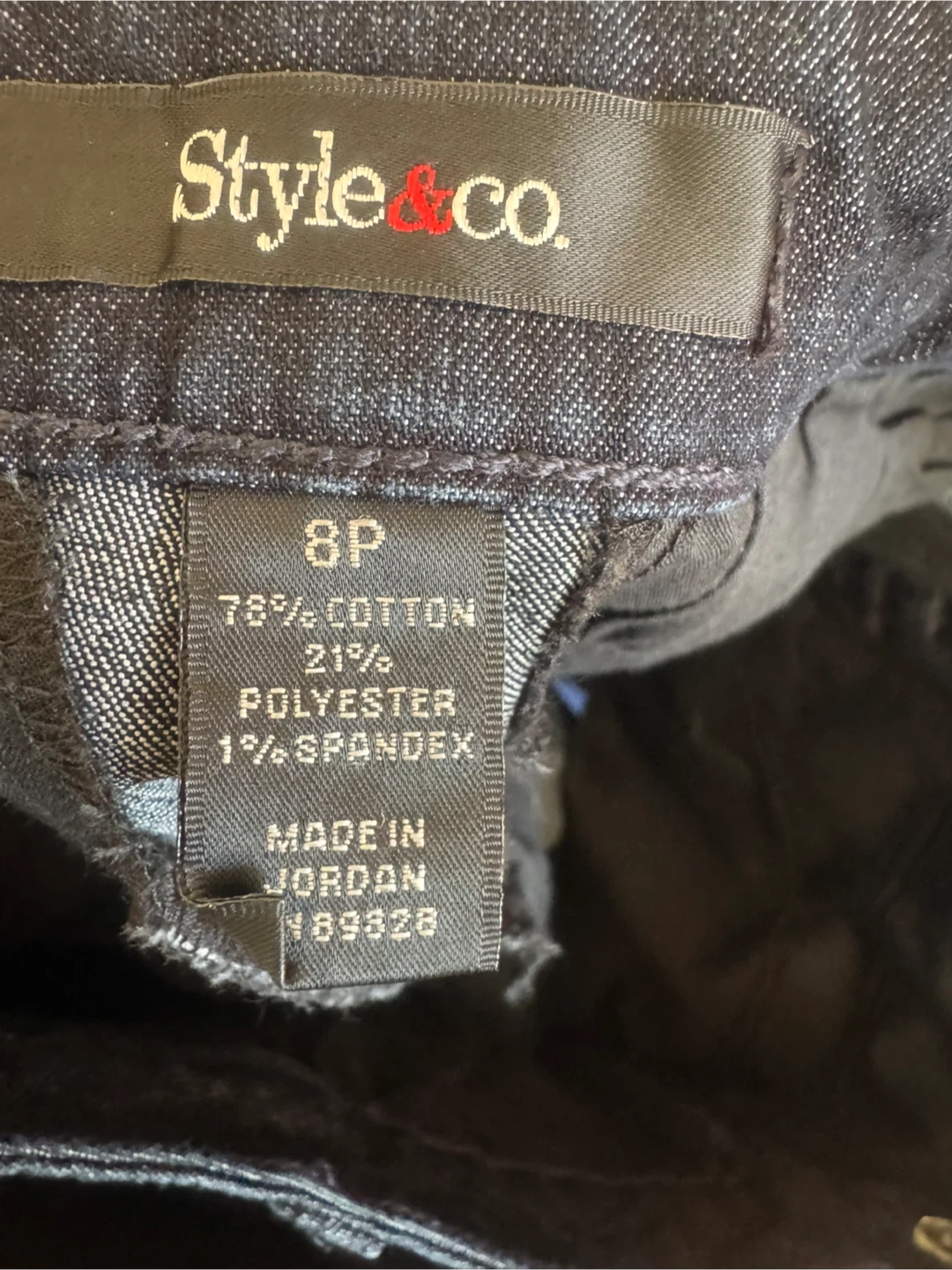 Estos pantalones cortos de mezclilla de lavado oscuro de Style & Co son una talla 8P. Están hechos de un 78 % de algod ón, un 21 % de poliéster y un 1 % de spandex para un ajuste cómodo.. $5 llévalo son nuevos