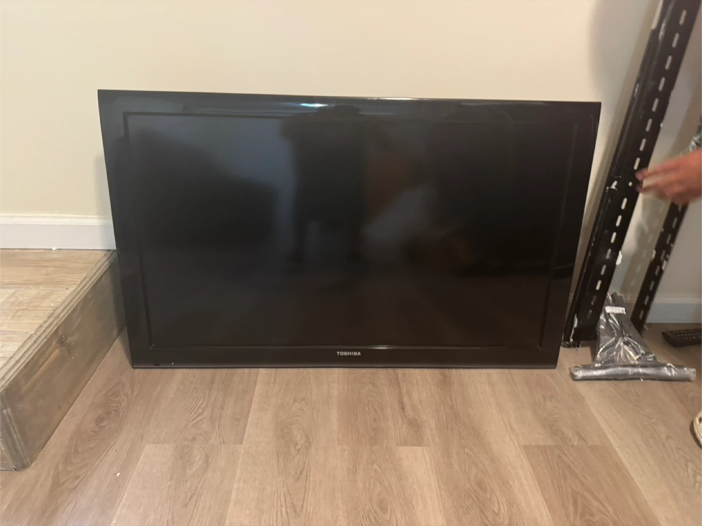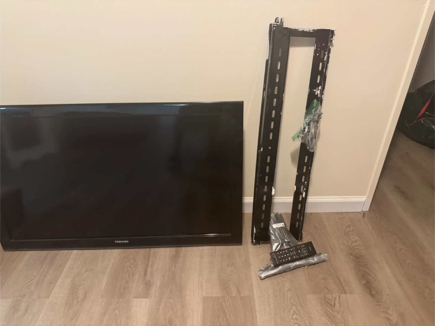 Toshiba TV, comes with the stand and remote. Perfect for a spare room or kids' room! The picture of this TV is an excellent excellent condition. Great TV. The only thing is is not a smart TV. I have the screws. The wall mount remote everything.