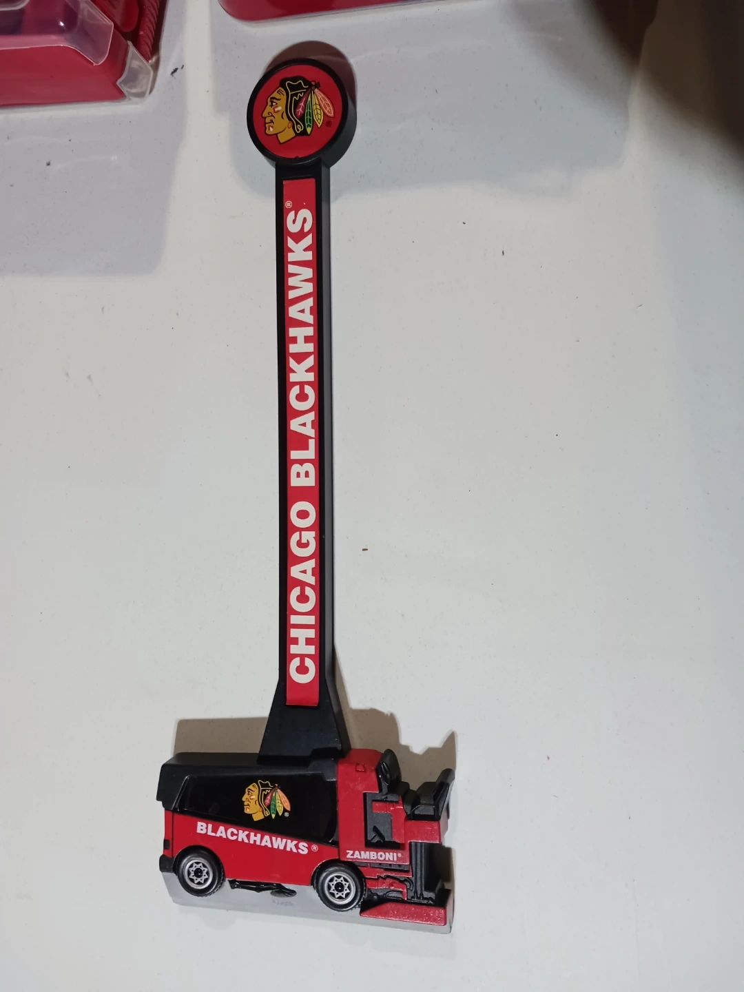 Selling a Chicago Blackhawks Zamboni ice resurfacer magnet. Features the team logo and "Chicago Blackhawks" text. A great collectible for any fan!