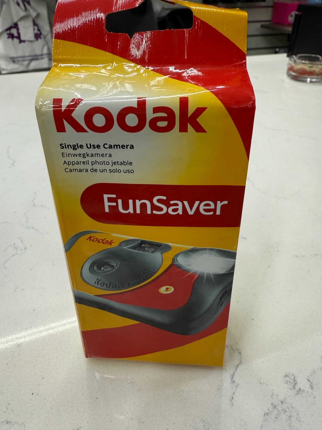 99New, unopened Kodak FunSaver single-use camera. Includes 800 speed film. Flash included. Great for indoor and outdoor photos.