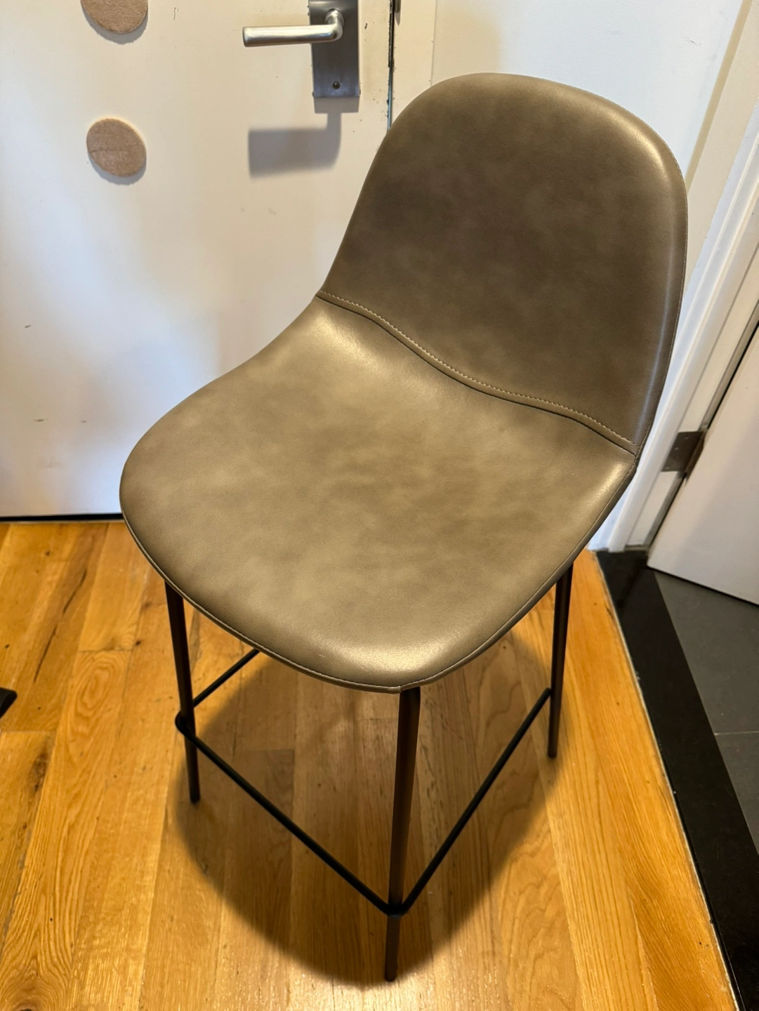 10Paid $600 for these but realized we needed counter height too late. Lovely, quiet and comfy. Original posting: https://www.wayfair.com/furniture/pdp/allmodern-kody-vegan-leather-bar-counter-stool-w004508276.html