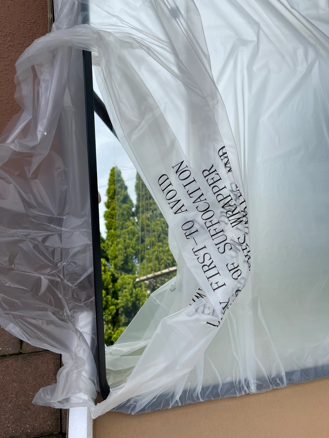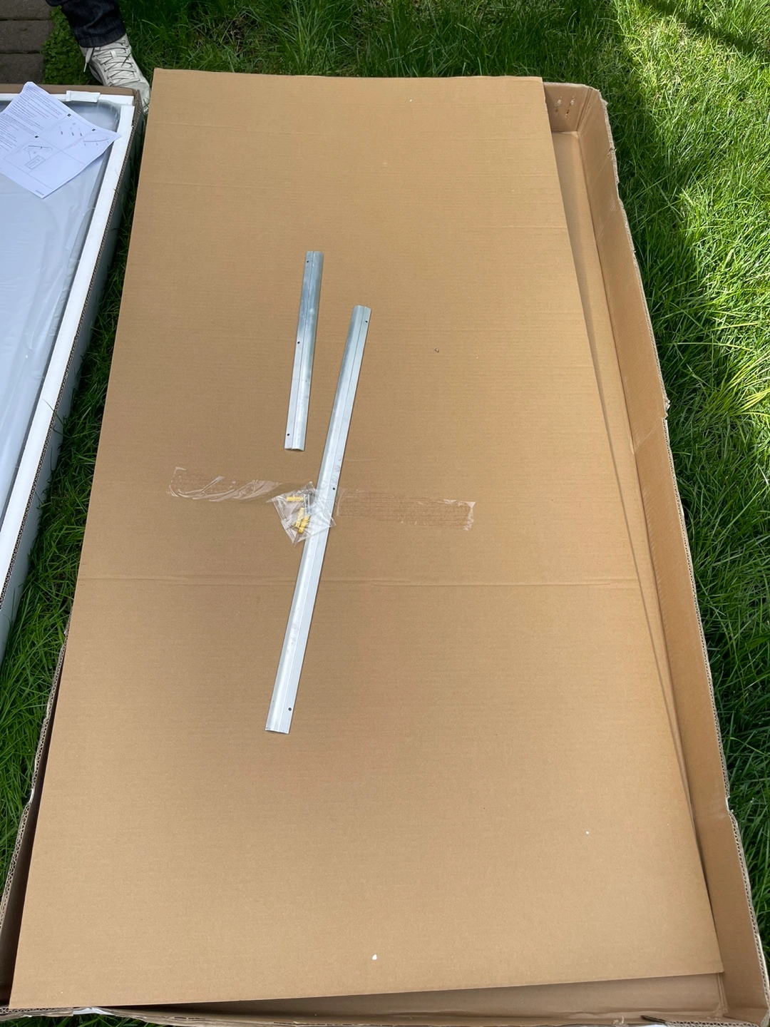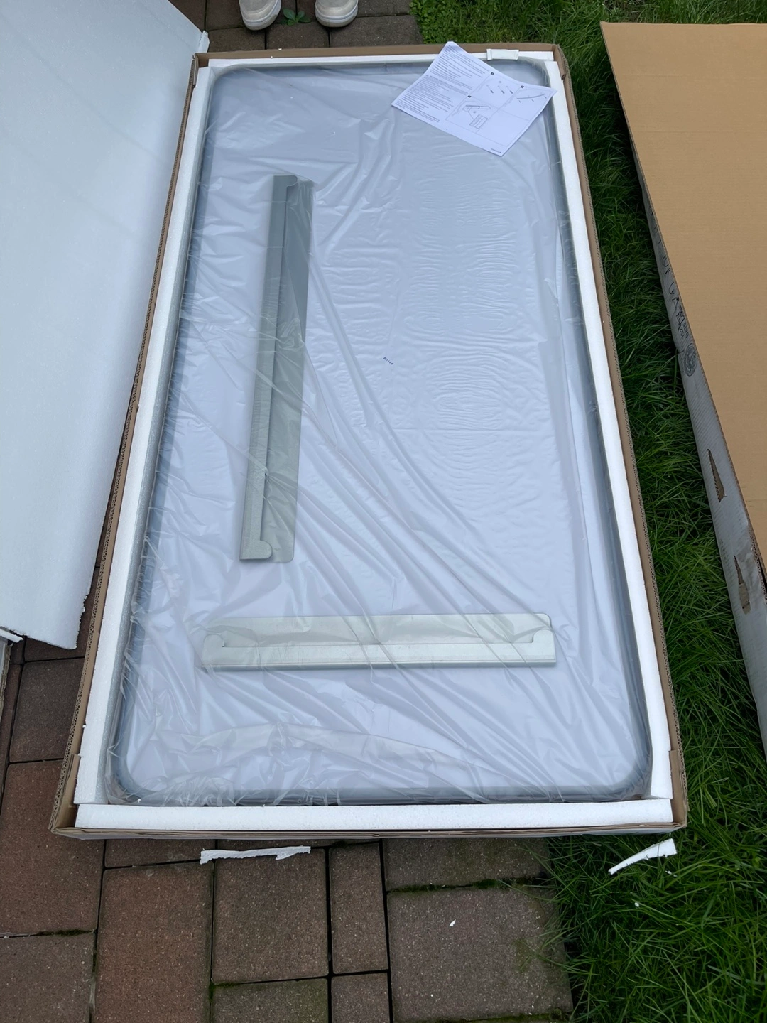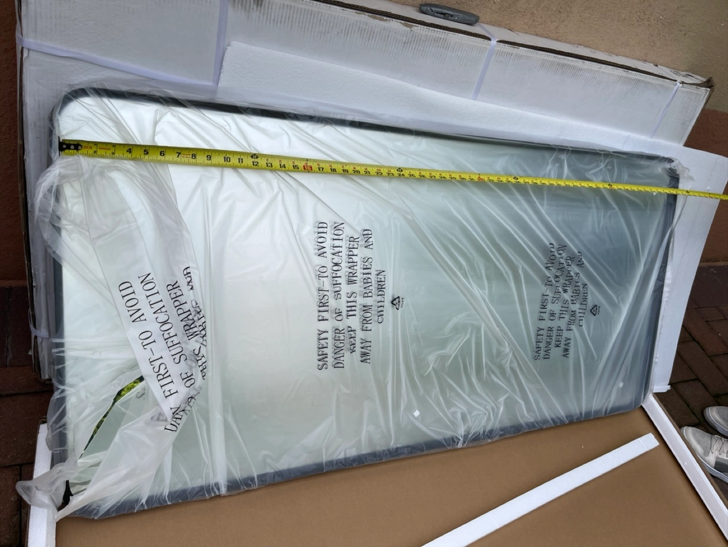 Selling a Custom KOHLER Essential Rectangle Mirror in matte black. It's still in its original packaging and has never been used. The model number is 31366-BLL. It measures approximately 60 inches in length and 30 inches in width.