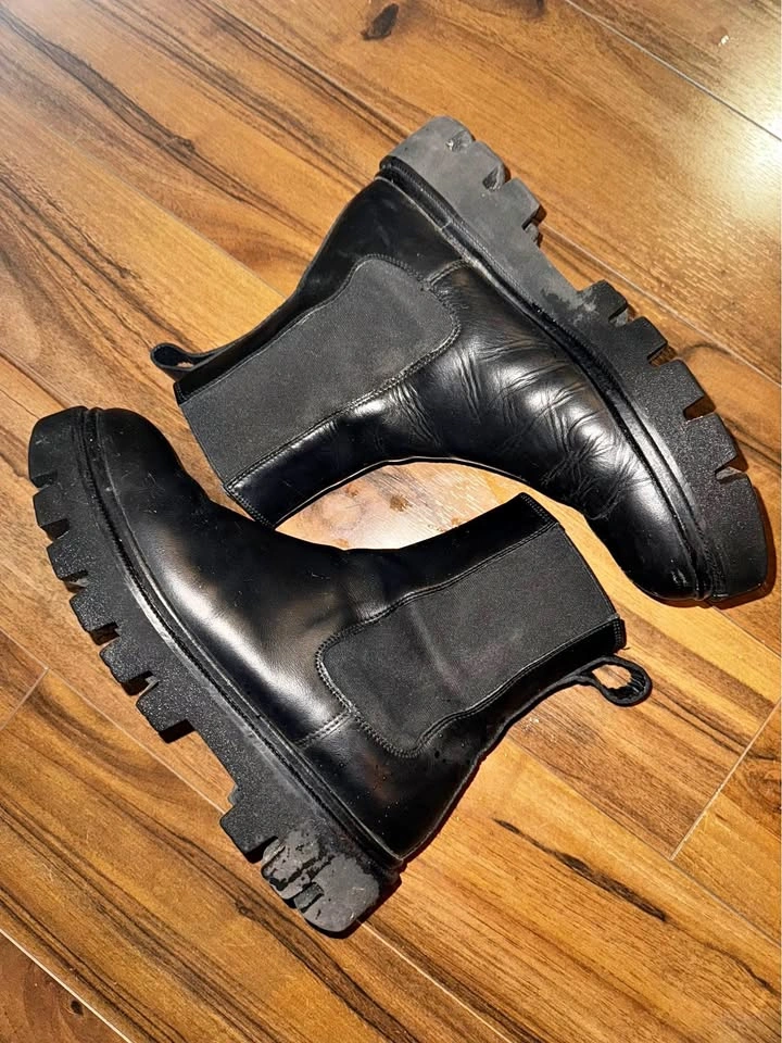 Women’s size 10 Men’s Size 40/US 8 Genderless chunky 100% leather Chelsea boots, literally goes with any outfit. Worn last winter but still in great condition Made in Italy