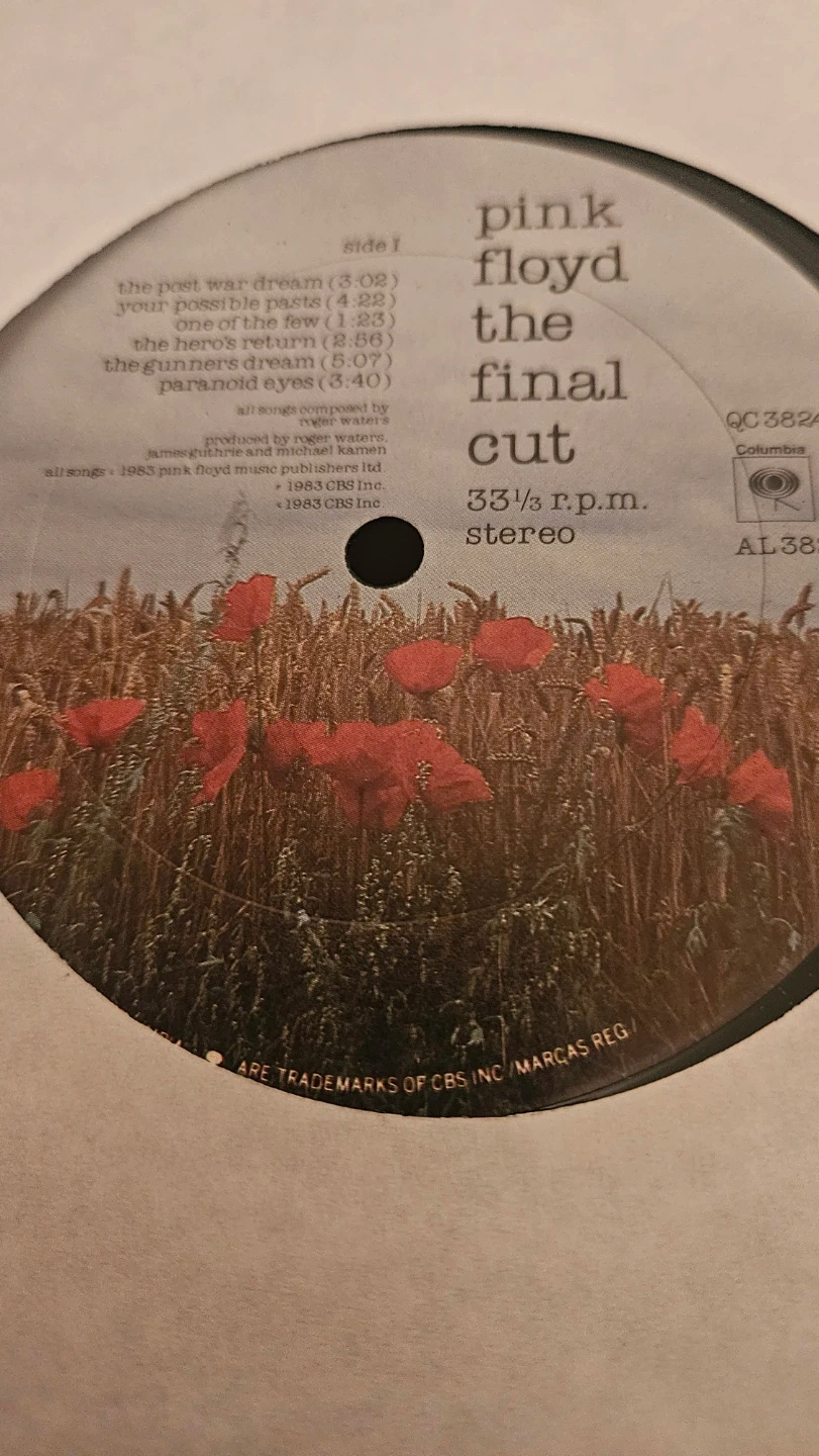 Selling a Pink Floyd vinyl record, The Final Cut. A classic album for any fan! The record is a 33 1/3 r.p.m. stereo version. It was released in 1983. Shipping $5 No cover.