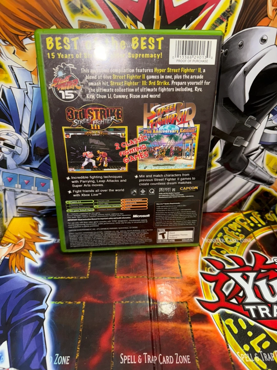 This compilation features Hyper Street Fighter II, a blend of five Street Fighter II games, plus the arcade smash hit, Street Fighter III. Prepare yourself for the ultimate collection of ultimate fighters! Includes original box and game disc.