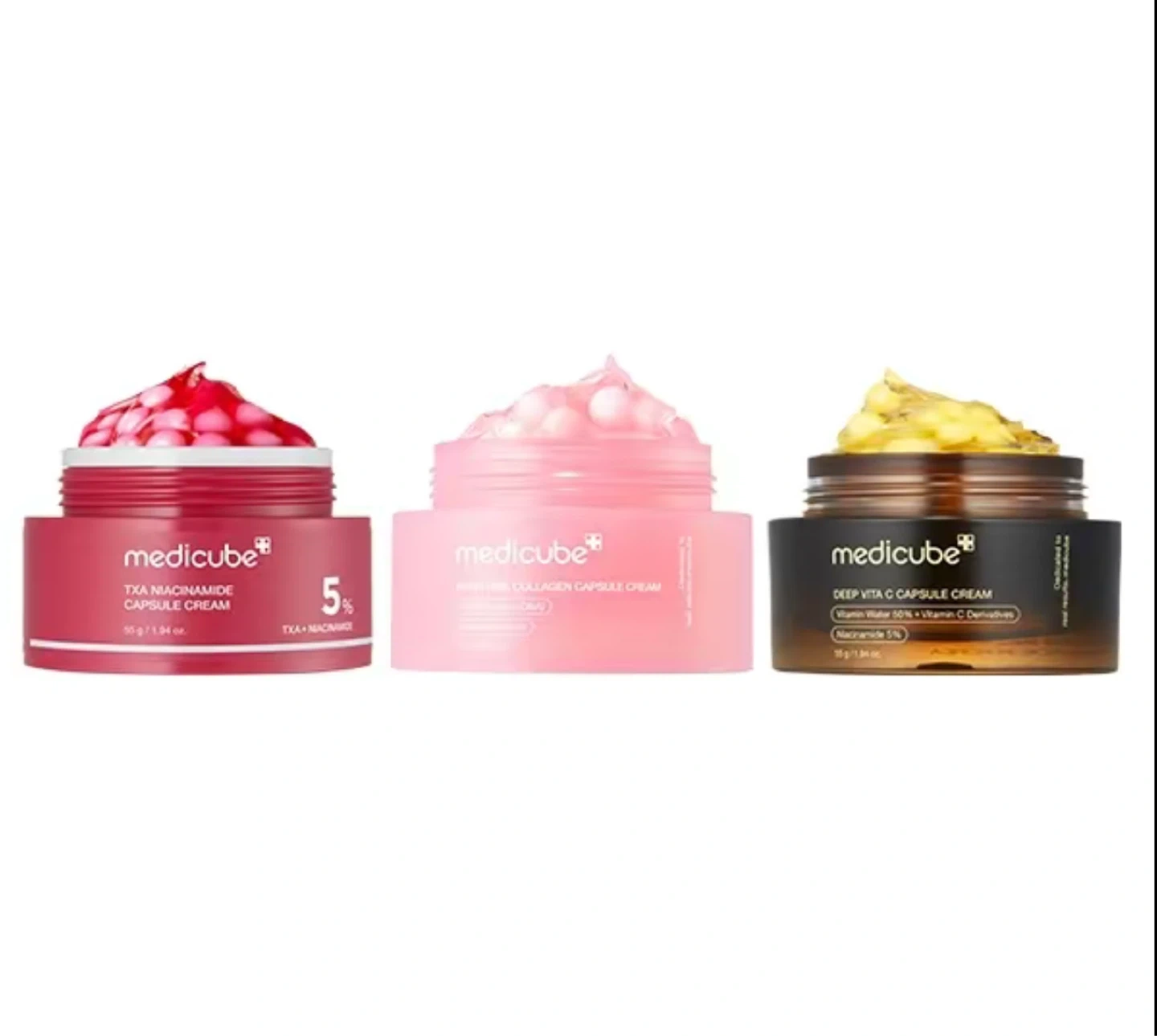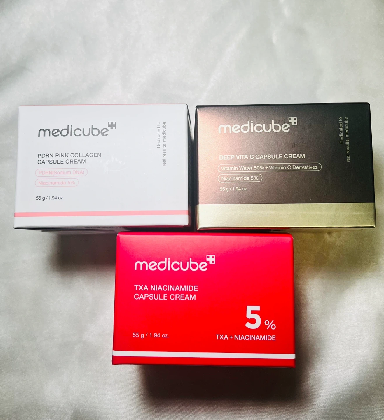 Selling a set of Medicube capsule creams! Includes three different types: PDRN Pink Collagen Capsule Cream, Deep Vita C Capsule Cream, and TXA Niacinamide Capsule Cream