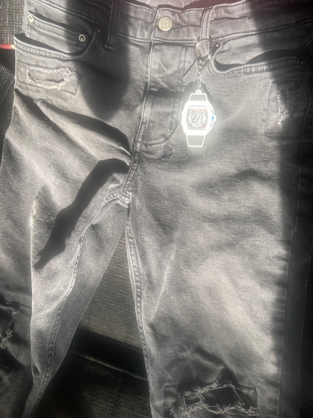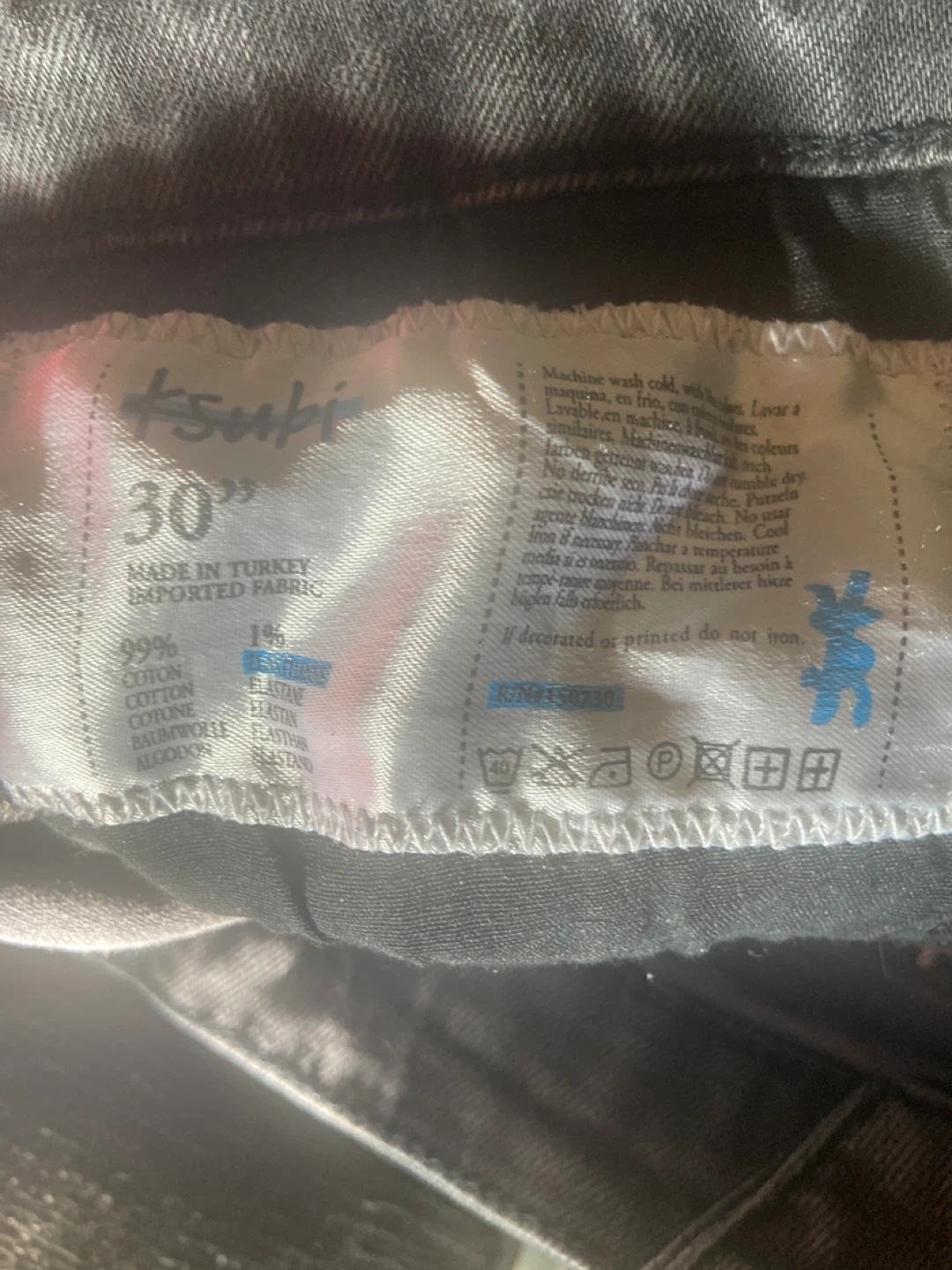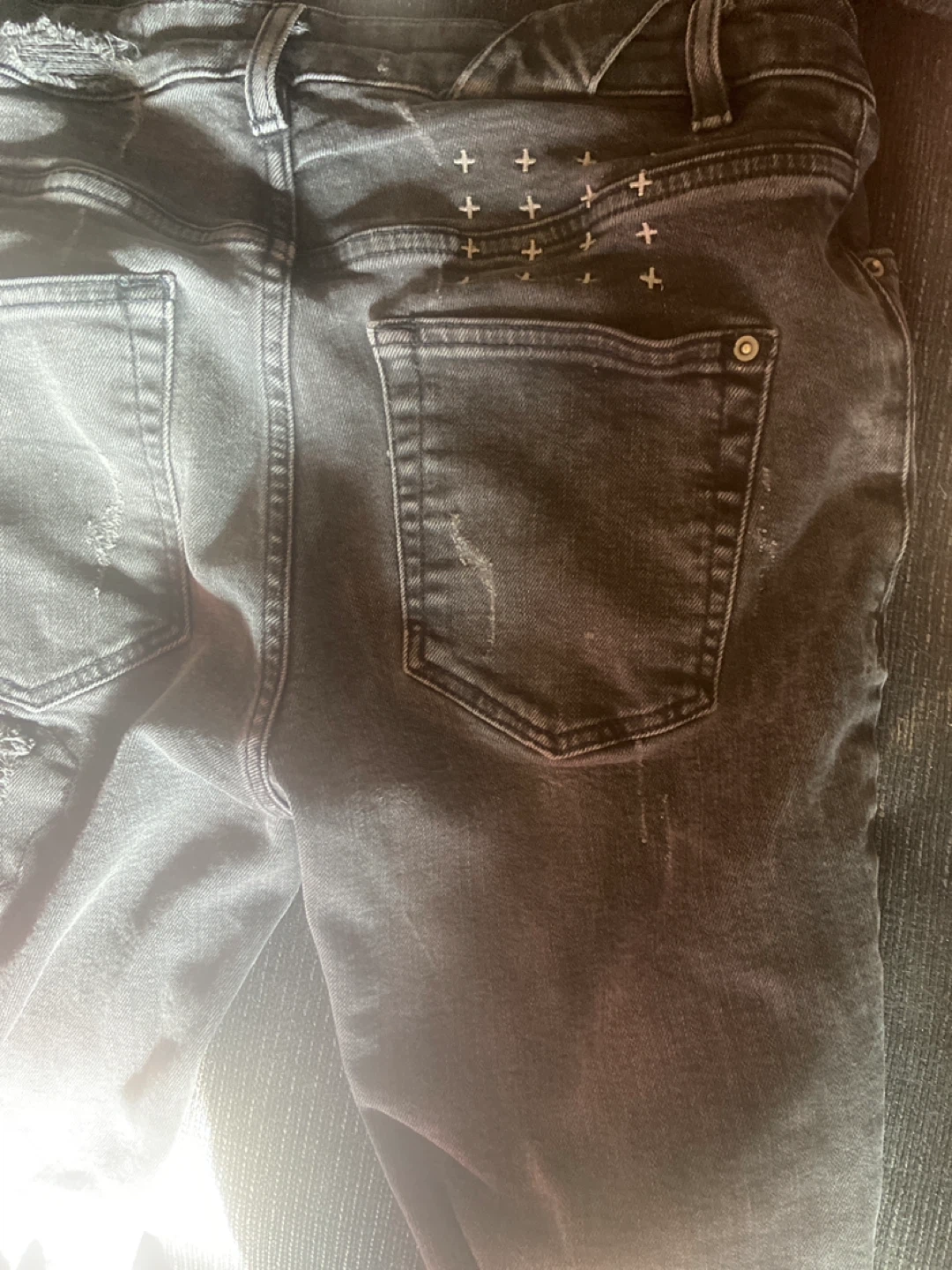 Selling a pair of Ksubi black distressed jeans in size 30. These jeans feature a stylish distressed look and are made from a comfortable blend of 99% cotton and 1% elastane.