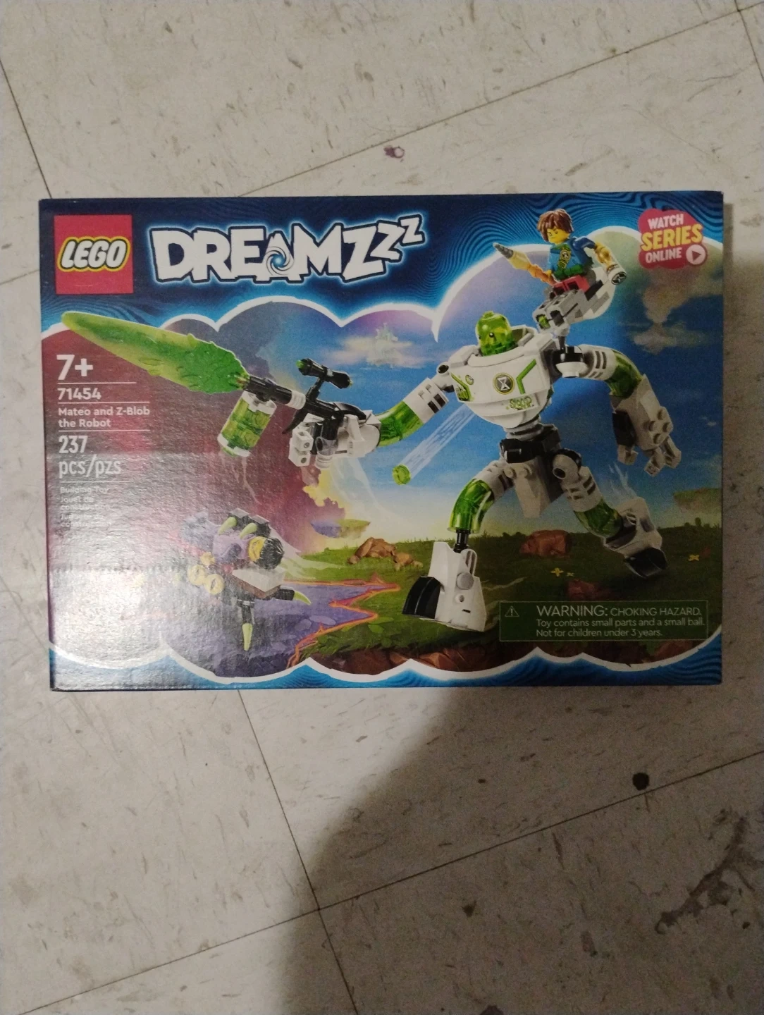 This LEGO DREAMZzz set features Mateo and Z-Blob the Robot, set number 71454. It includes 237 pieces for building. Suitable for ages 7 and up.