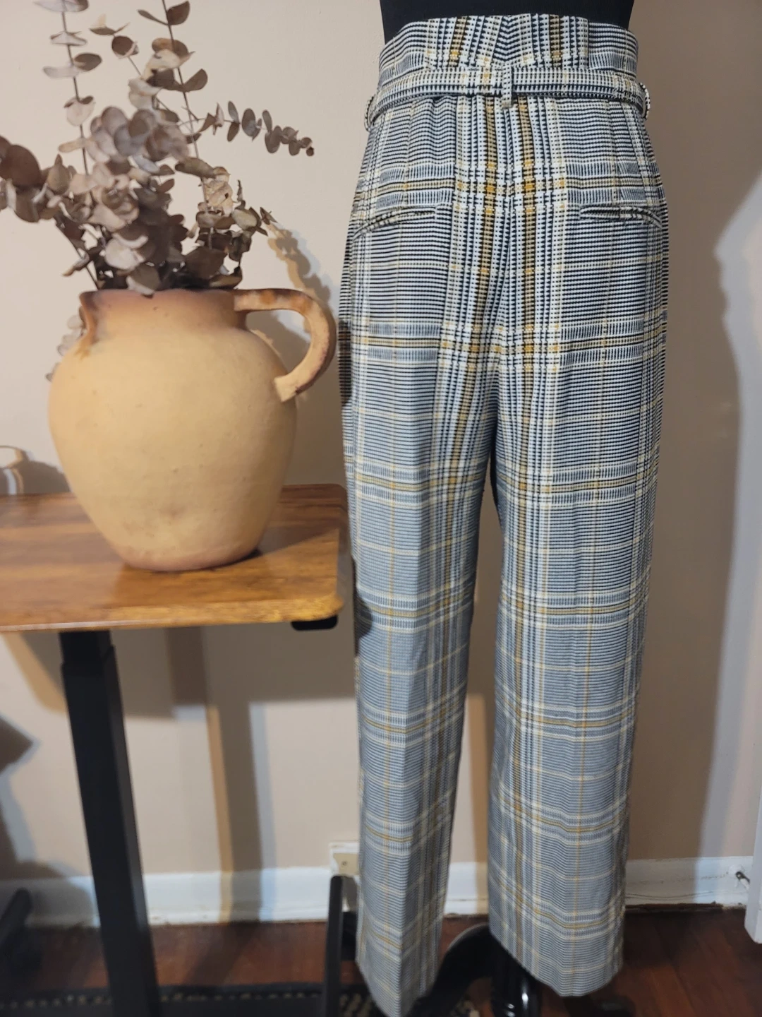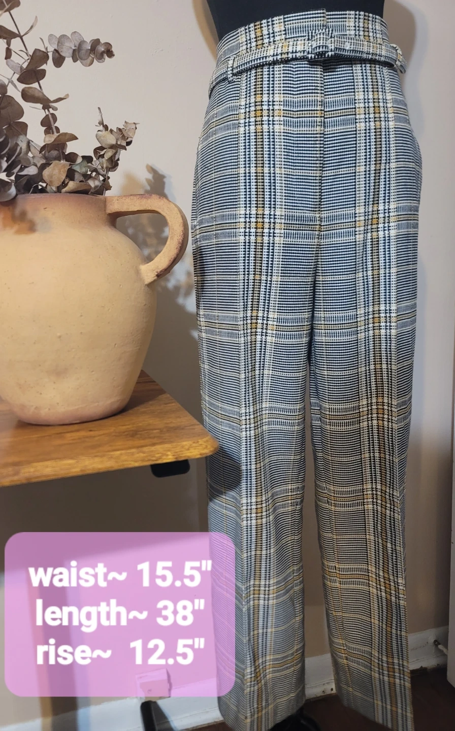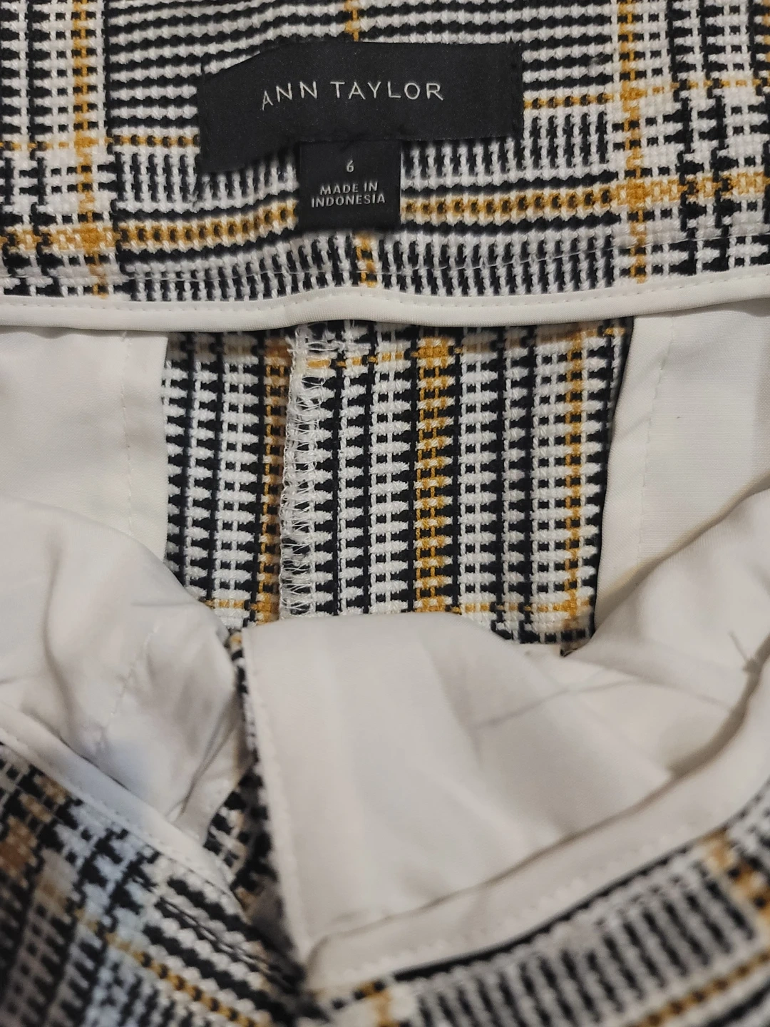 These are a pair of Ann Taylor pants in a plaid pattern. They are a size 6 and have a belt. The waist measures approximately 15.5", the length is 38", and the rise is 12.5". They are in great condition!