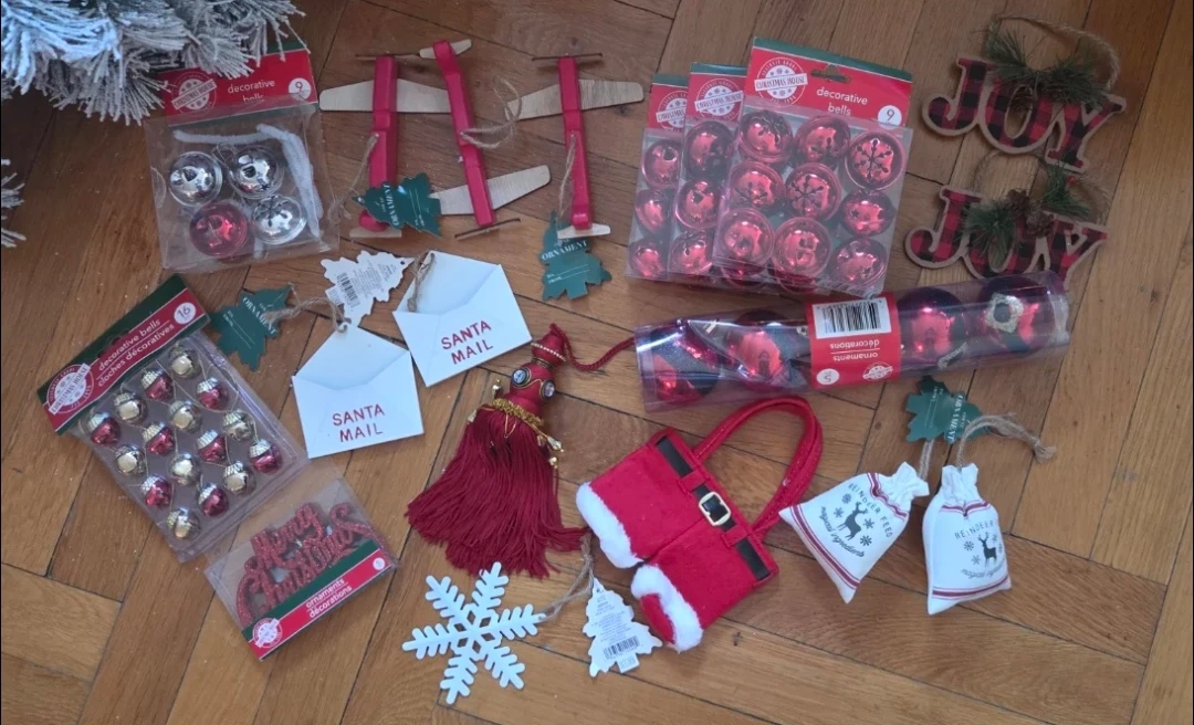 Pick up a collection of Christmas House decorative ornaments and bells! Includes a variety of styles and colors to add some festive cheer to your holiday decorations. Perfect for decorating your tree or adding a touch of holiday spirit to your home. Store them with your tree and you are already prepared for next year. I will throw in a 10ft string of white lights as well.
