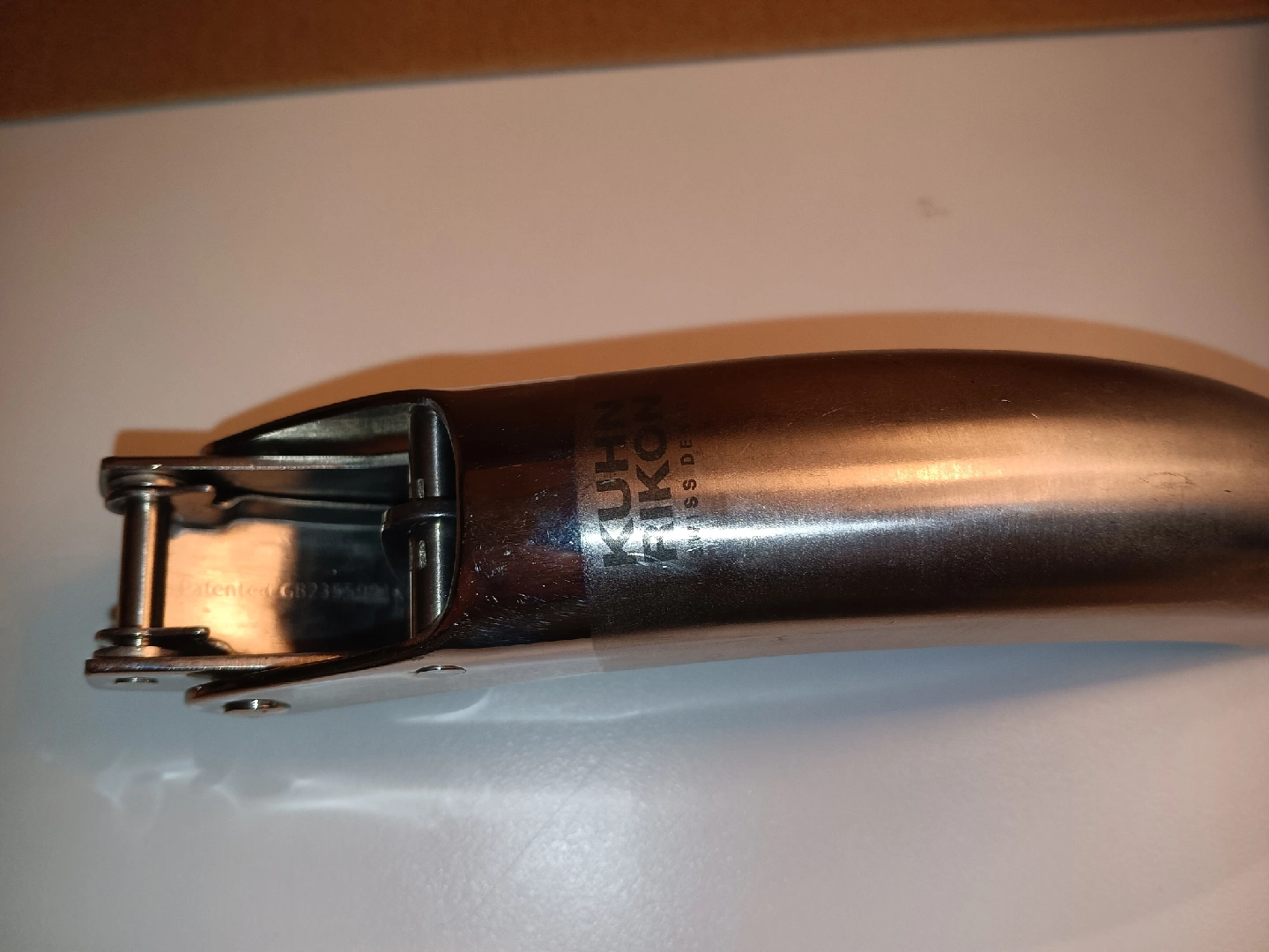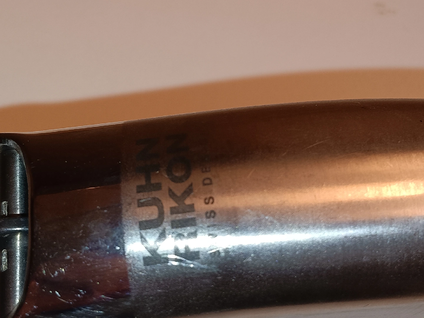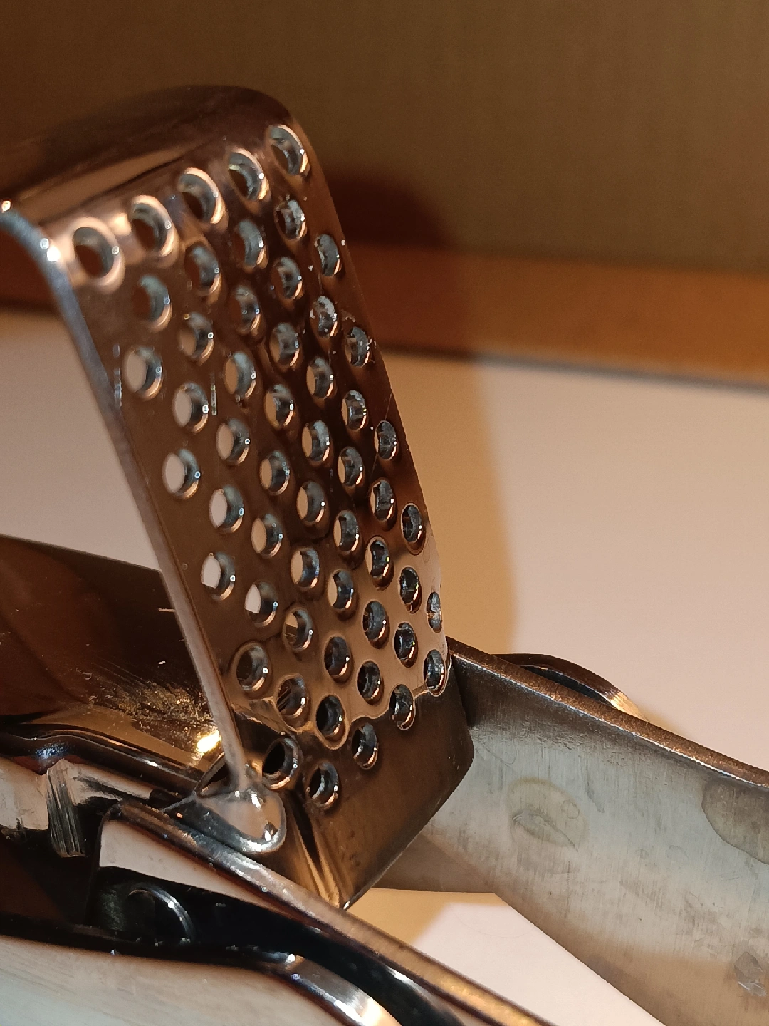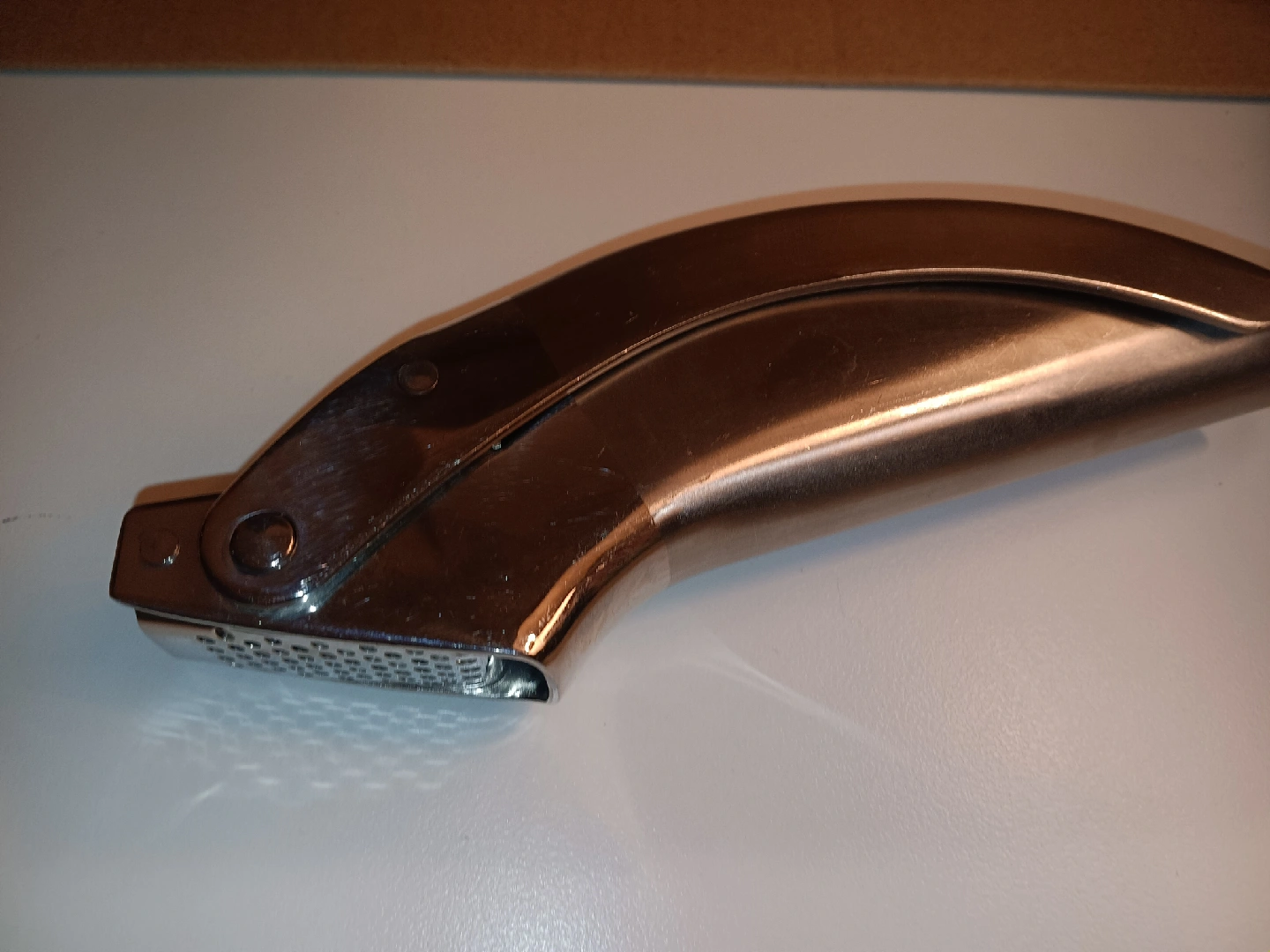 I'm selling a Kuhn Rikon garlic press. It's a great kitchen tool for mincing garlic quickly and easily. This garlic press is made of durable stainless steel.