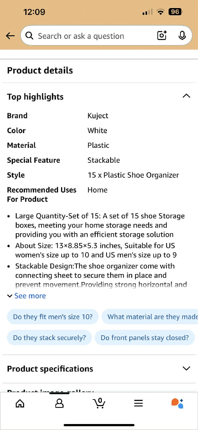 I'm selling a Kuject shoe organizer! It's white and made of plastic. It's stackable, so it saves a lot of space. The organizer comes with connecting sheets to secure them in place and prevent movement. It's suitable for up to US women's size 10 and men's size 9. The size is 13 x 8.85 x 5.3 inches. This is a set of 15 shoe storage boxes! Brand new still in box moving need gone ASAP