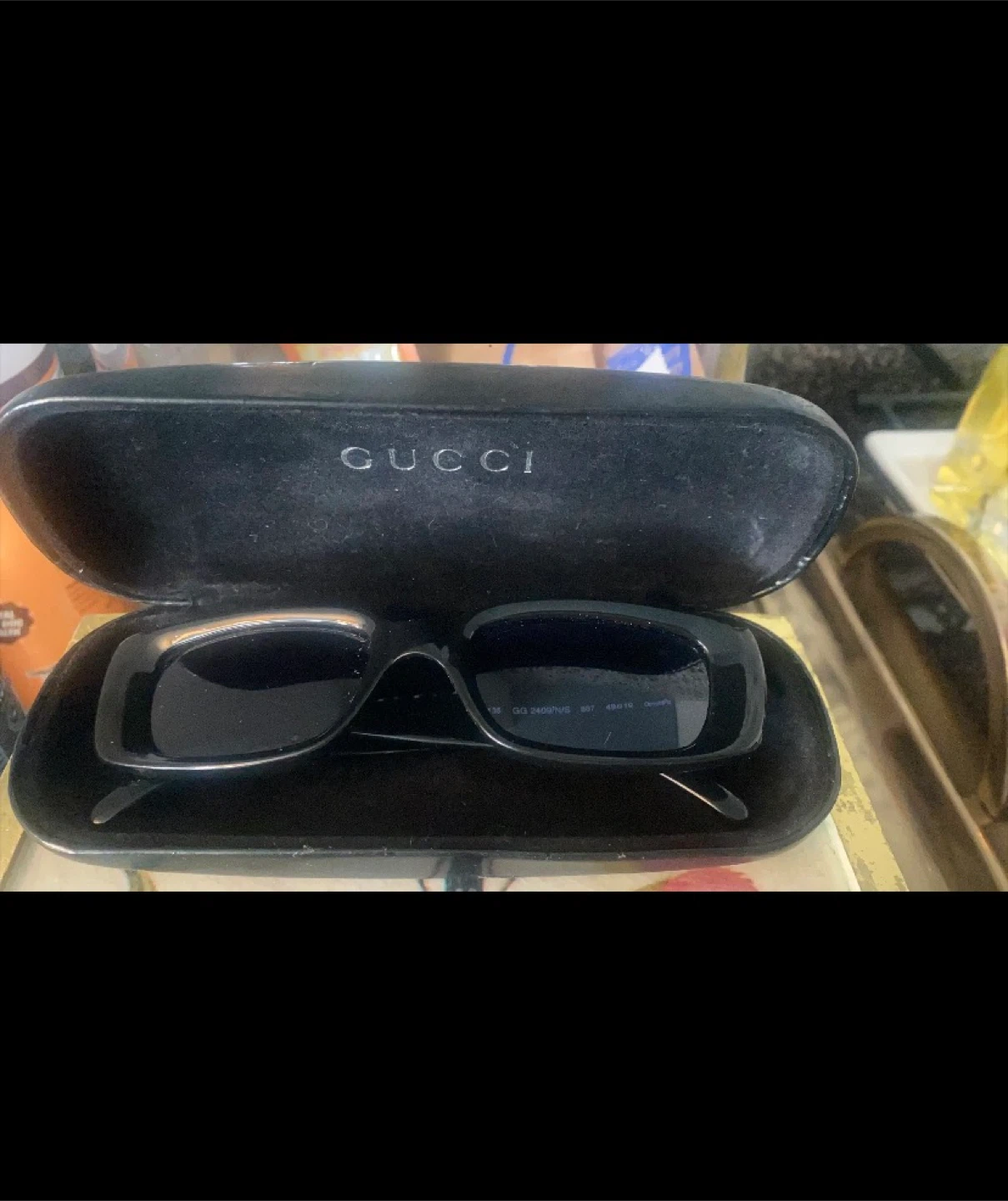 Authentic Gucci sunglasses with a black frame and dark lenses. Includes original Gucci case. Model GG 2409/N/S, 807, 49 019. Great for everyday wear!@casa_s_decor Pick up in the Bronx