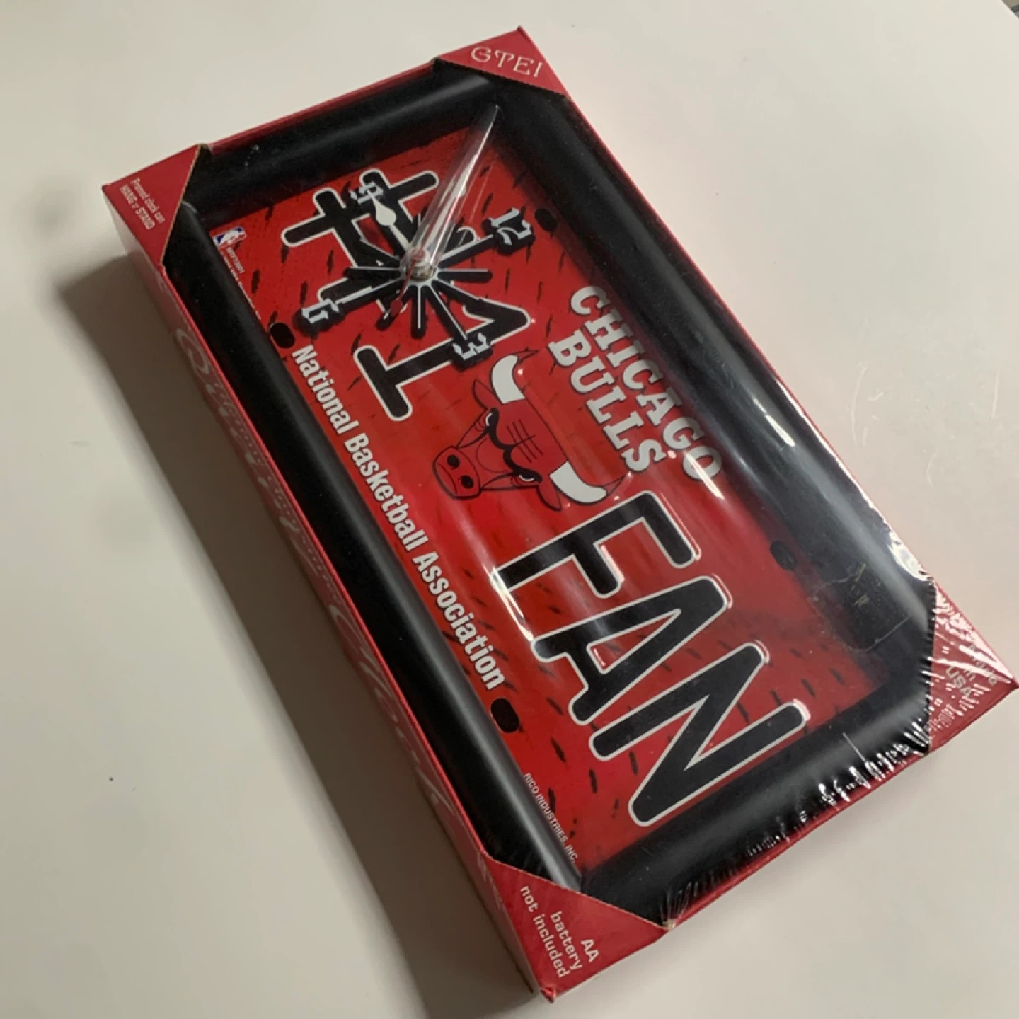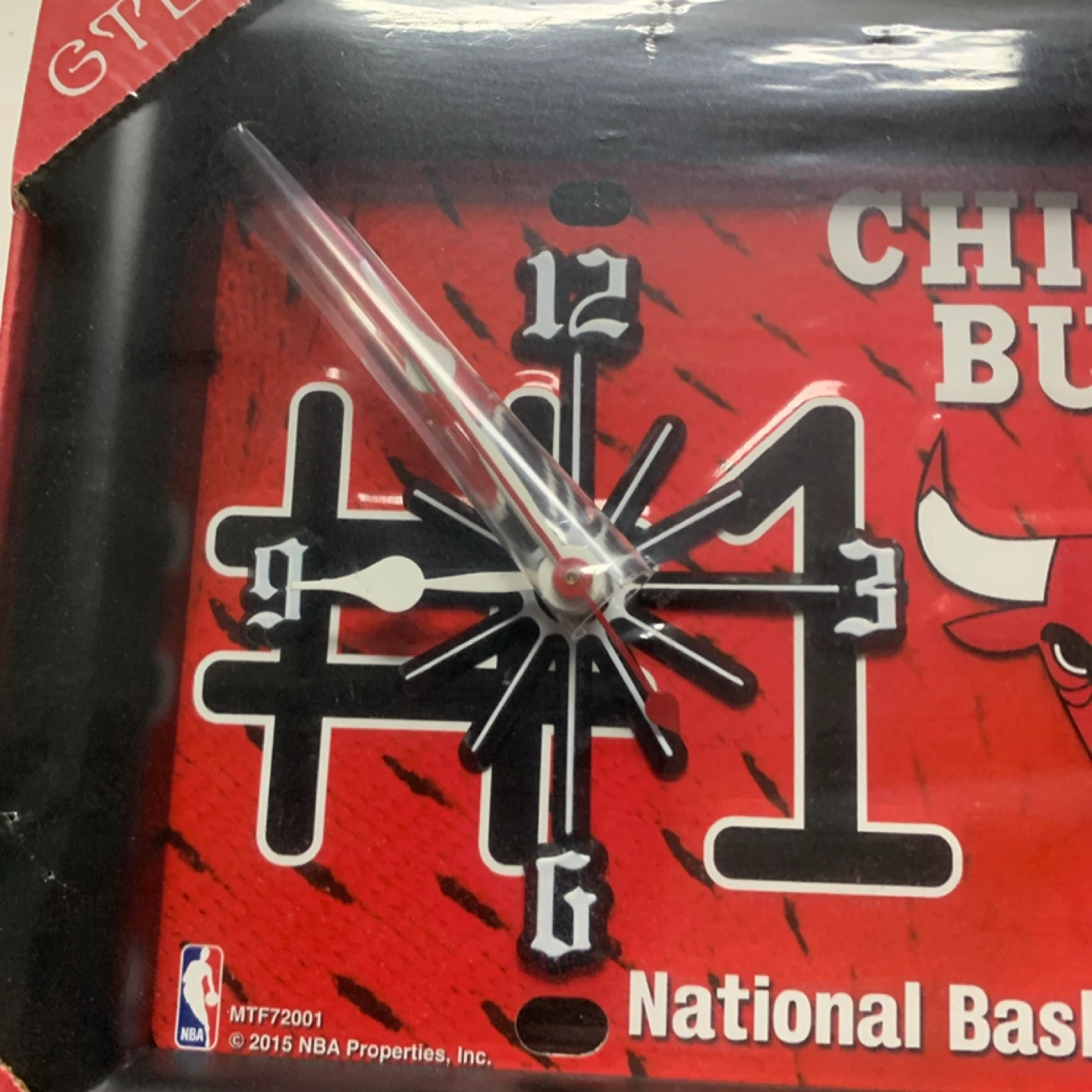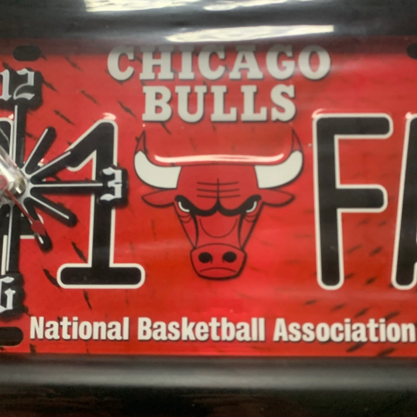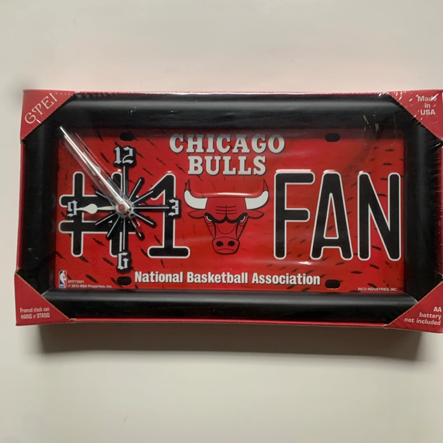 This is a Chicago Bulls branded framed clock. It's designed for any NBA fan. The clock is made in the USA and features the team's iconic logo. Requires one AA battery, not included.