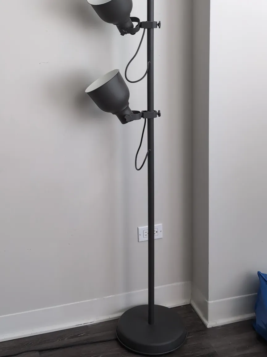 Selling a black floor lamp with adjustable lights. It's in great condition and perfect for adding some focused light to any room