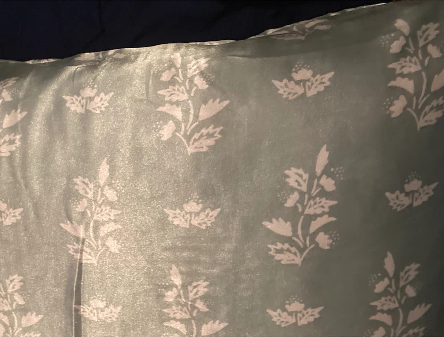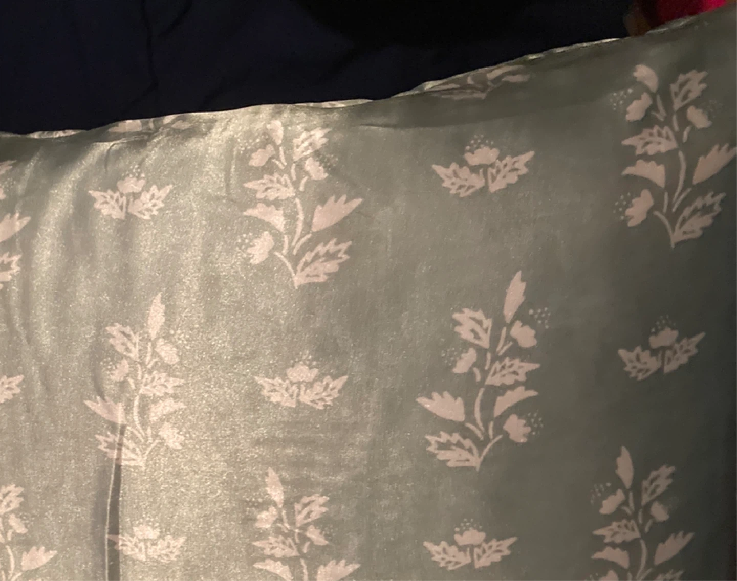 Selling a luxurious soft pillow case . Features a satin sage green color with a delicate floral pattern. Perfect for face and hair. Helps reduce wrinkles. Add a touch of elegance to any room with this amazing Silk pillow case.