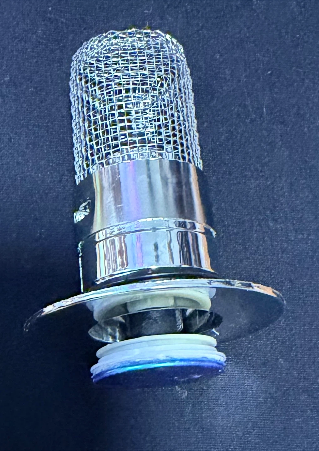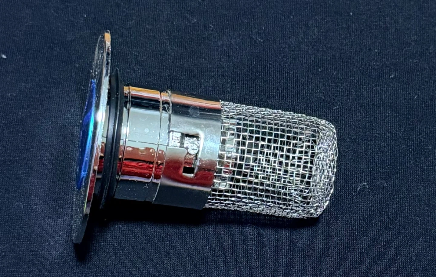 Chrome Mesh Drain Stopper with Blue Accent