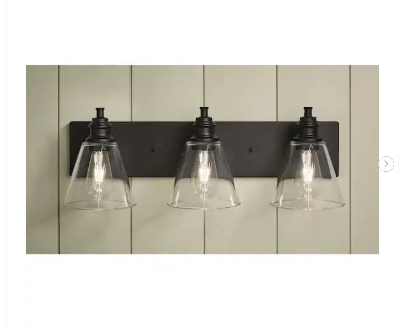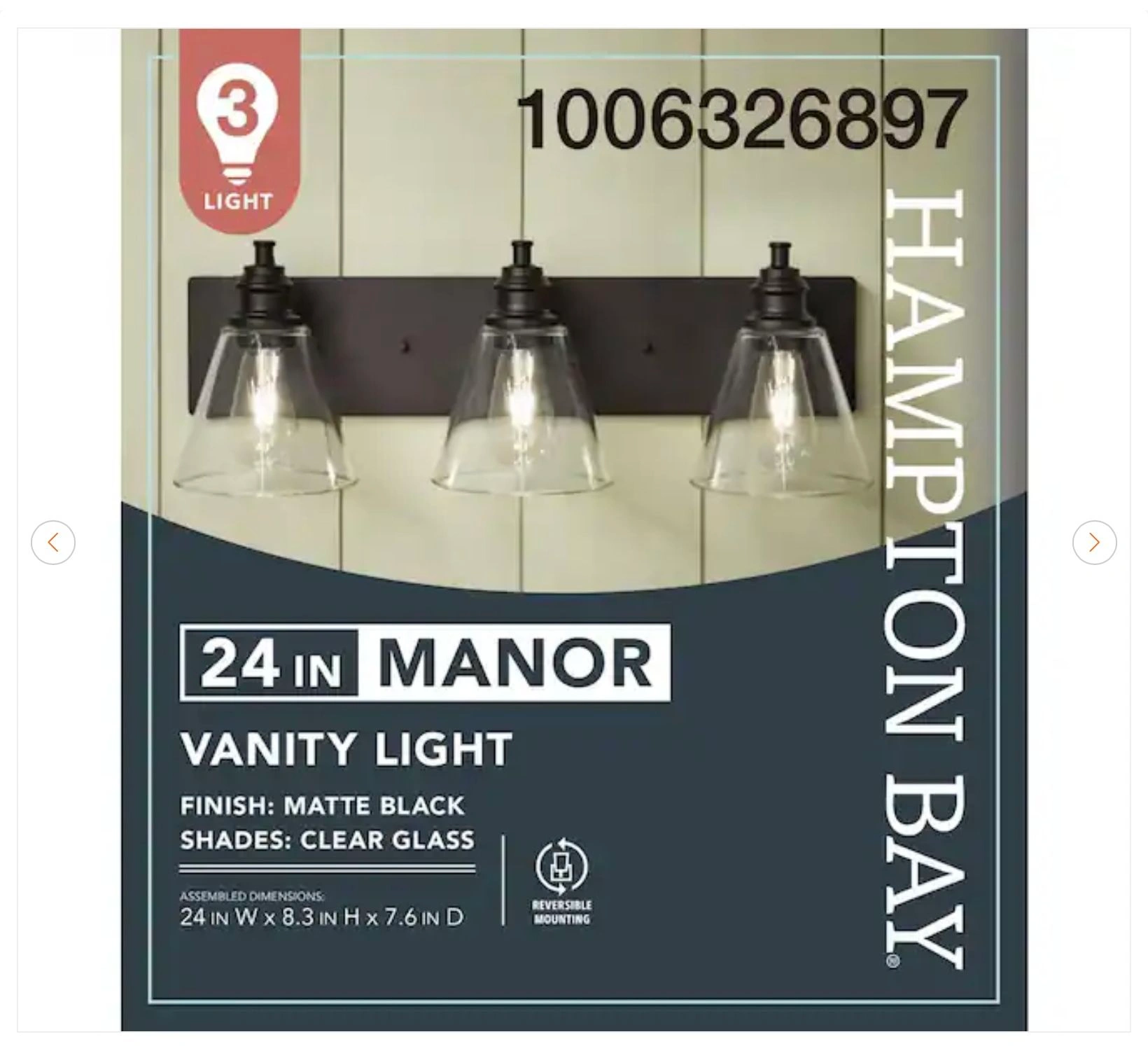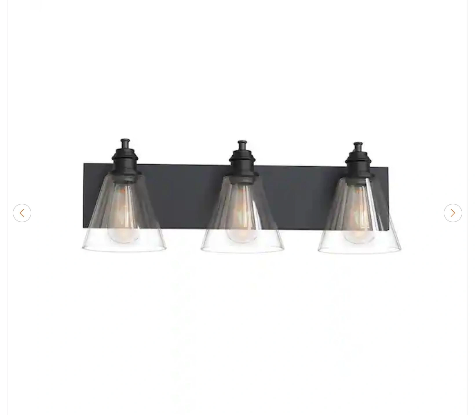 Brand new Hampton Bay Manor 3-light vanity light with a matte black finish and clear glass shades. Let me know if you're interested!