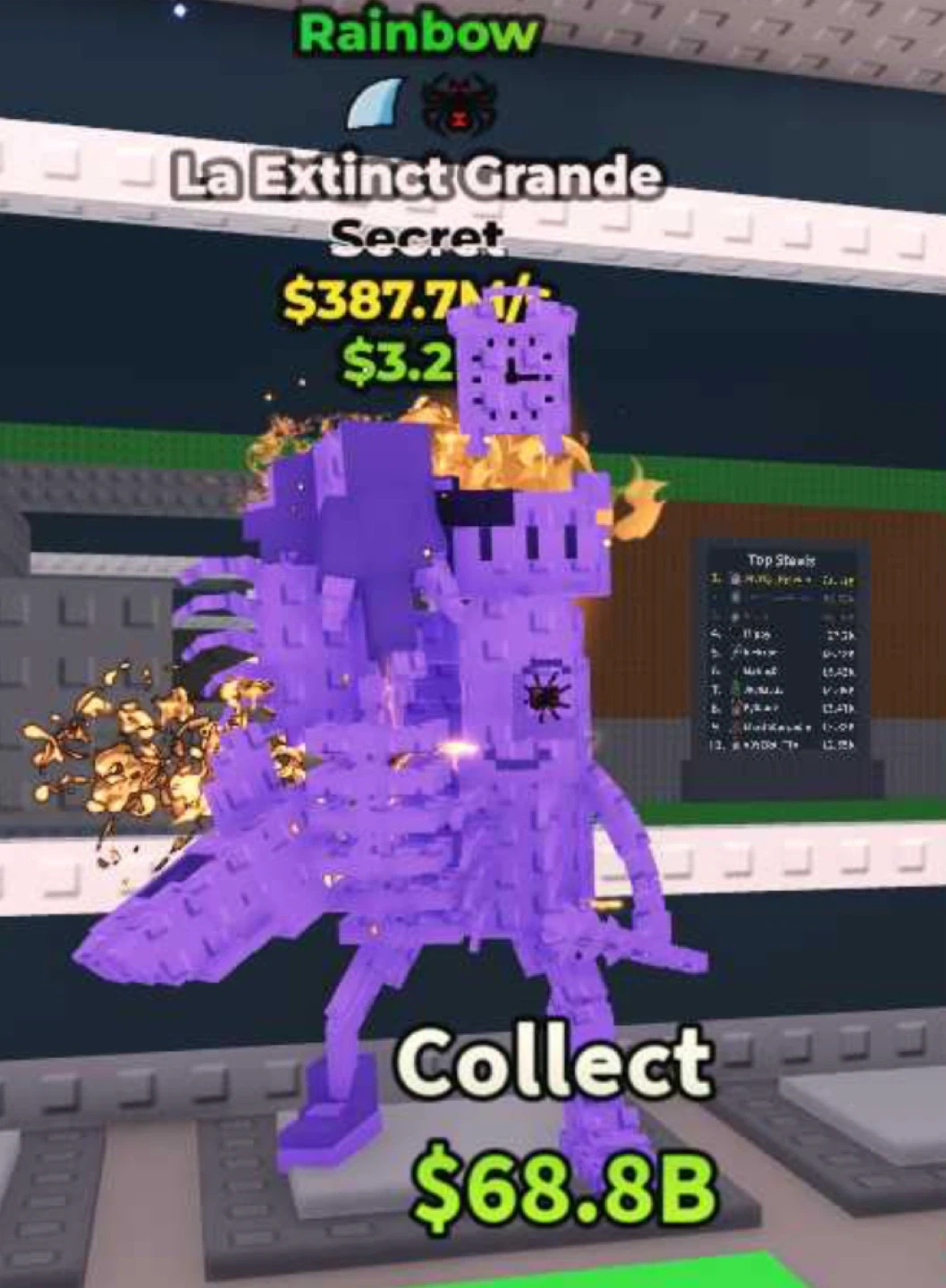 10Selling a La Extinct Grande Secret, looks like a cool character from a game! It's purple and has a clock tower on its head. Collect it for $68.8B!