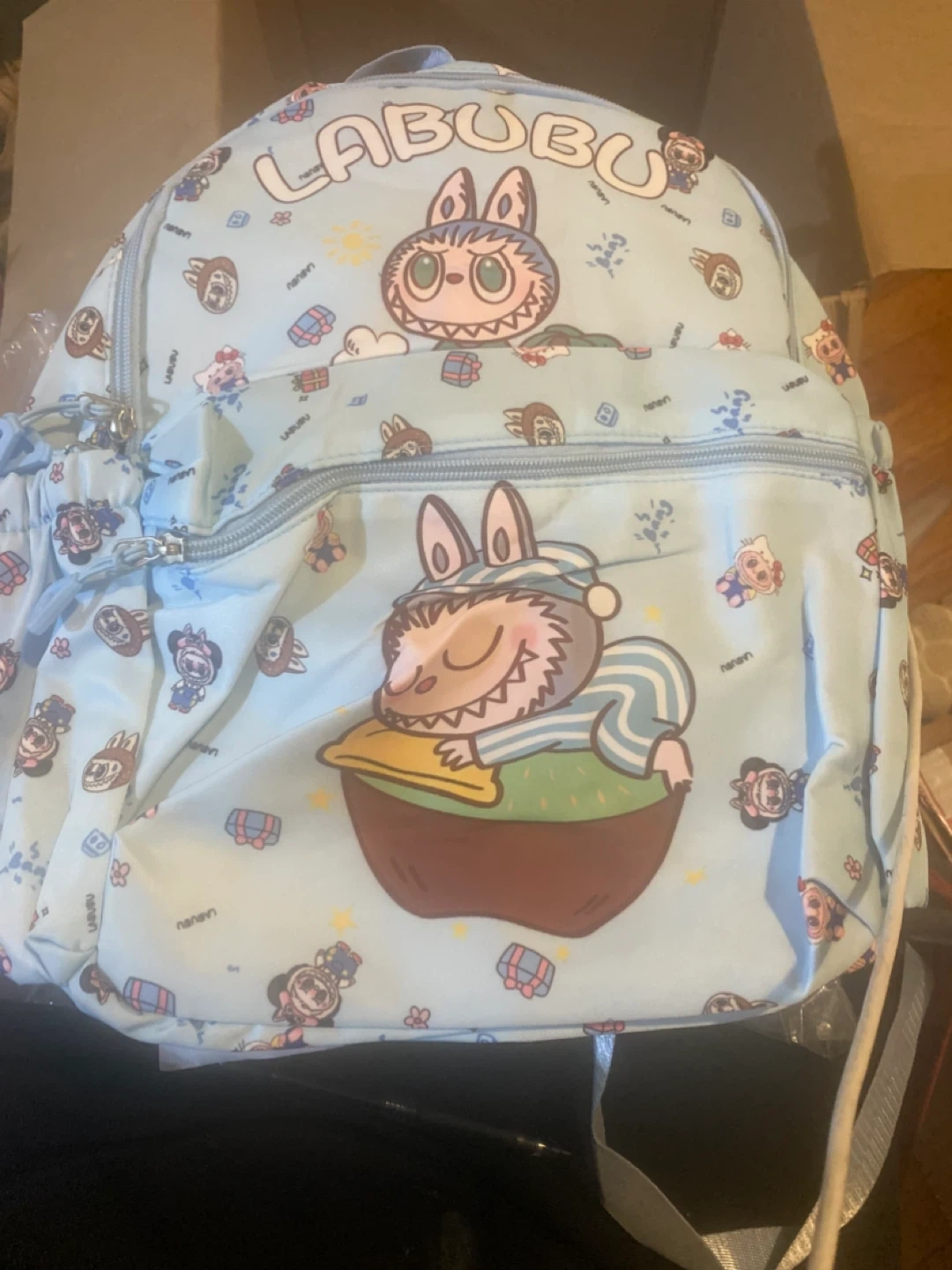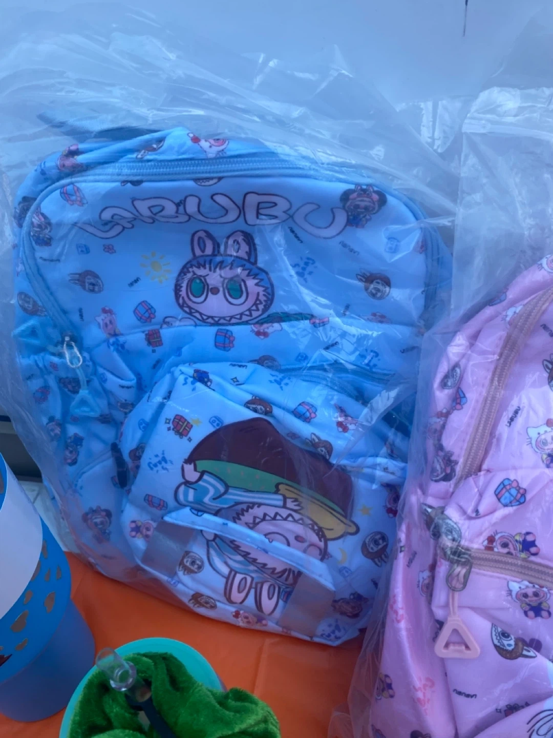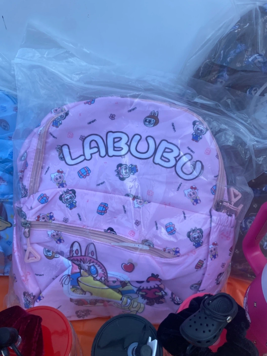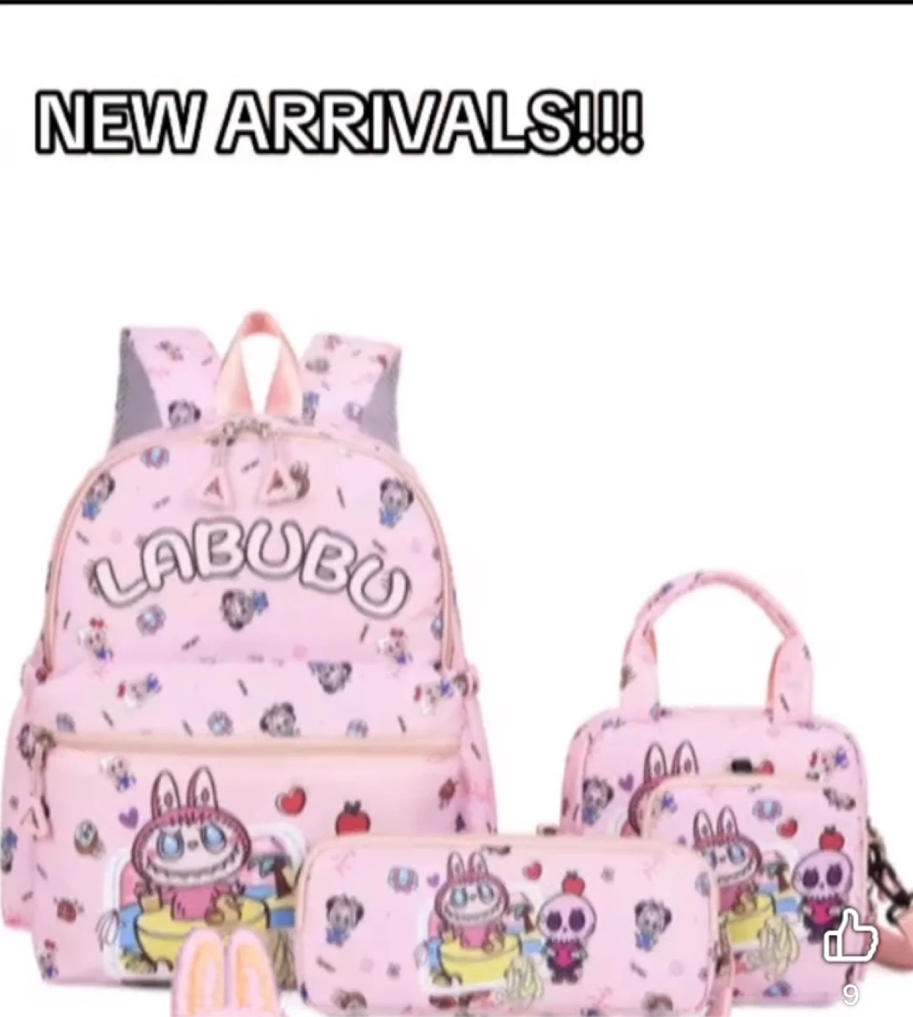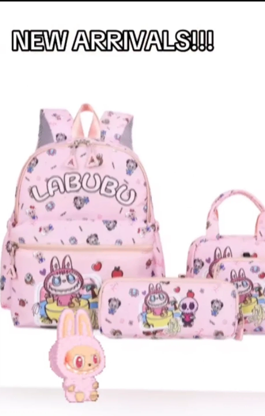 I have a Labubu backpack for sale! It's super cute and perfect for kids or anyone who loves fun designs. It comes in brown, blue, and pink color. Great for school or everyday use, one is a four piece set and other single backpack
