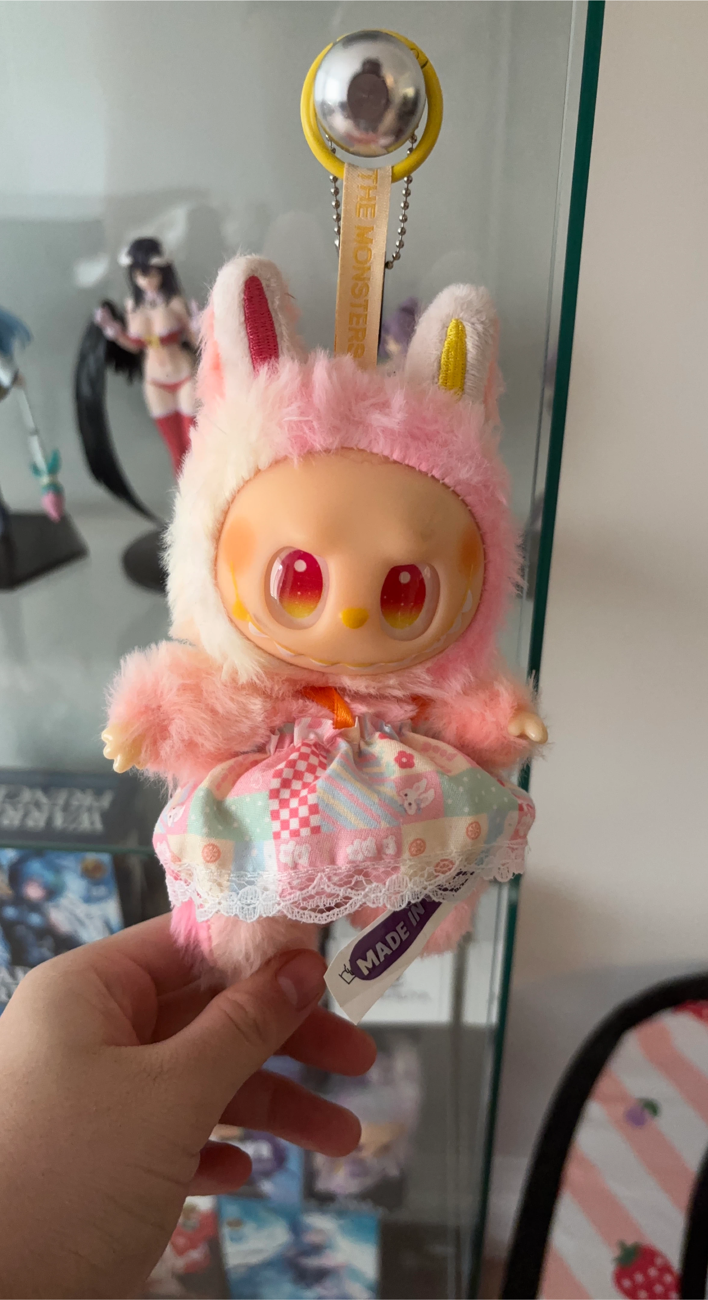 This is a cute Labubu The Monsters bunny plush doll! It's in great condition and ready for a new home