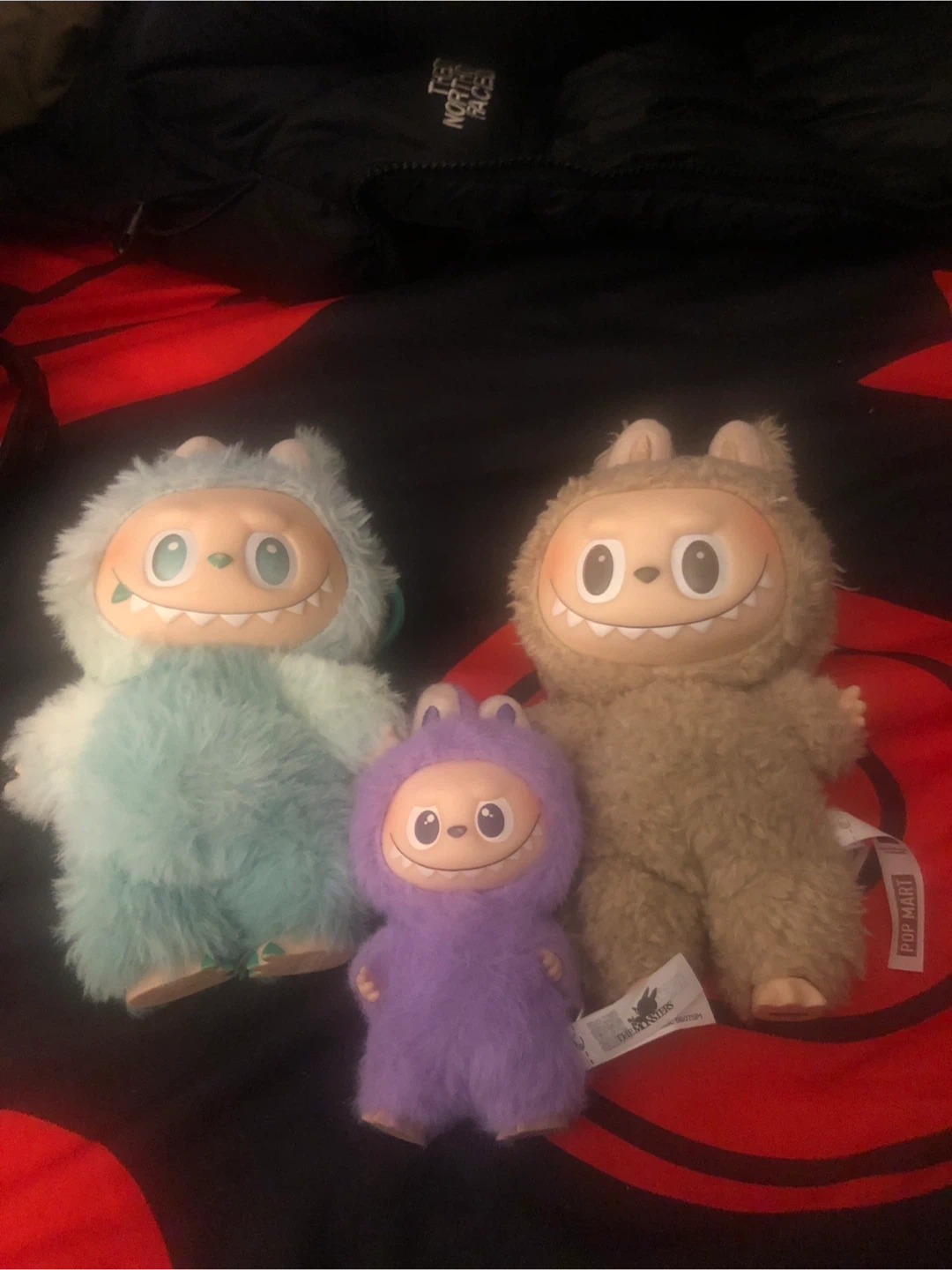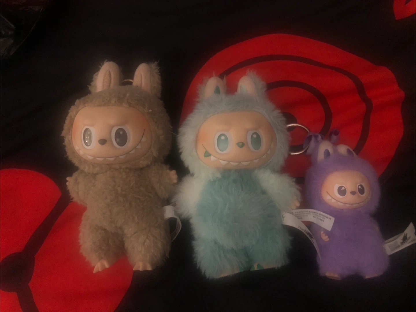 94Selling a set of three Labubu The Monsters plush toys! They are in great condition and ready for a new home. The set includes a brown, a light blue, and a purple Labubu plush toy. Perfect for collectors or anyone who loves cute and unique plushies