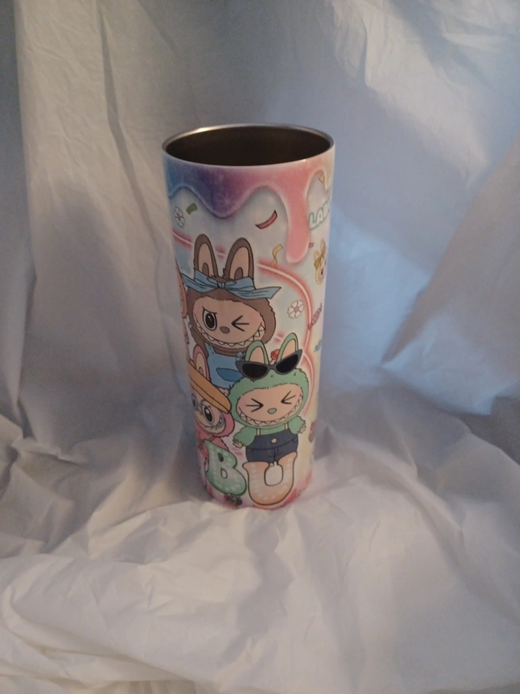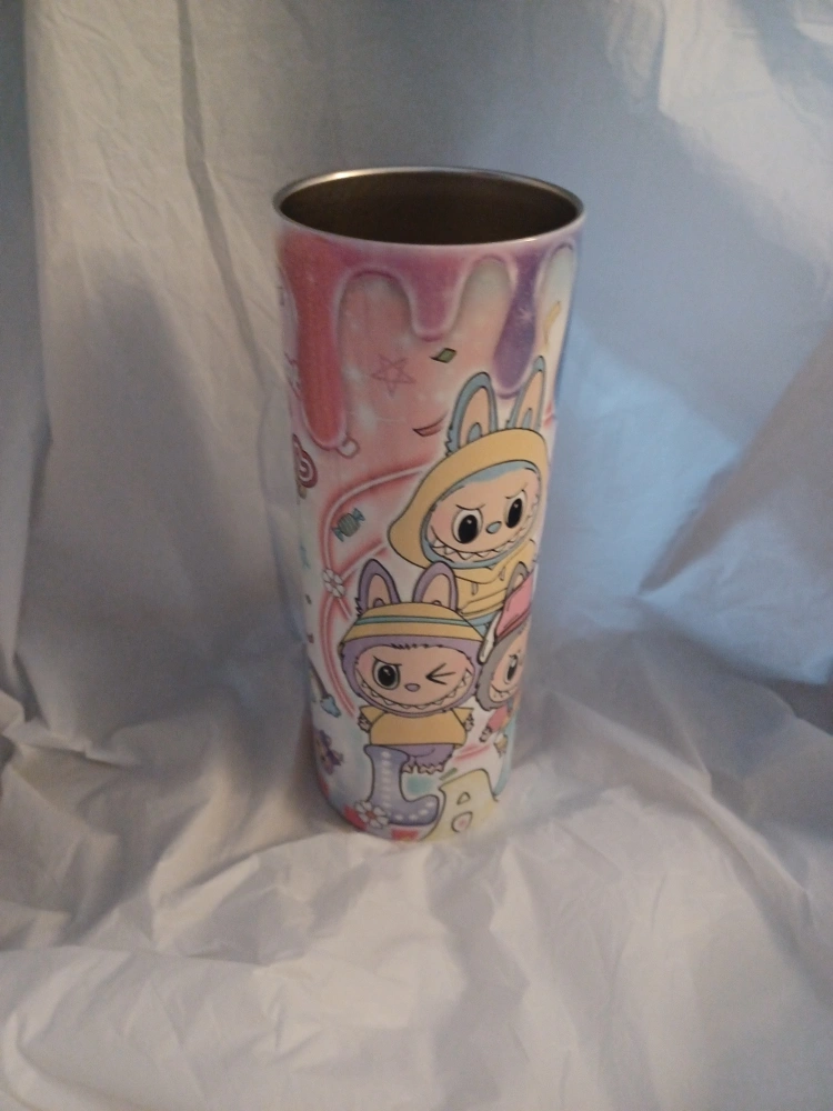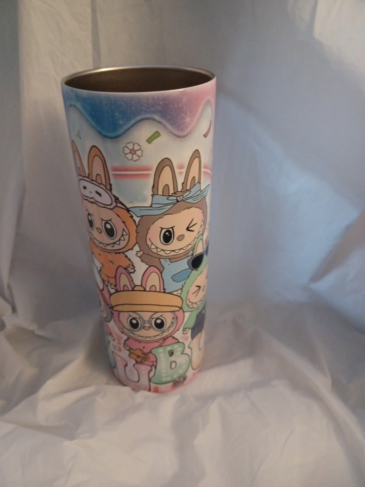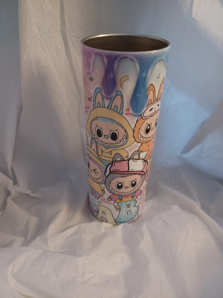 Here's a fun tumbler with labubu characters all over it! It's in great condition and ready for a new home